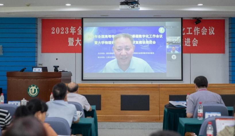 会议围绕教育数字化、科技时代下的大学物理课程教学与建设、数字化教学平台构建与改革、虚拟教研室建设等多个议题展开。清华大学教授王青、汕头大学教授陈敏、上海交通大学教授胡其图等嘉宾分别就教育数字化的学习体会、教育数字化转型的思考与课程尝试、大学物理数字化教学平台构建与教学改革等进行了深入分享。17位大学物理教学名师进行了主题报告。