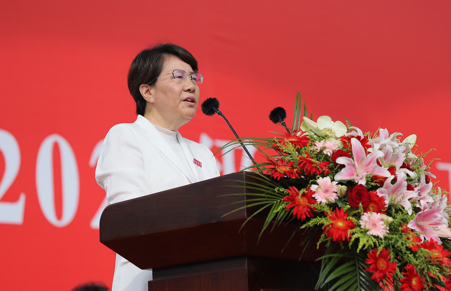 典礼上,校长邢卫红讲话,代表学校向全体2023级新生表示热烈欢迎,向辛勤指导训练的军训教官致以崇高敬意。邢卫红说,beat365中文官方网站历史悠久、底蕴深厚,鸿儒云集、人才辈出,特色鲜明、使命光荣,同学们在这里求学逐梦,故事会更加精彩,将来大有可为。邢卫红用三句话与全体新生共勉:一是“博学”,把学习作为第一任务,在博学善思中筑牢成长根基;二是“求是”,把创新作为第一本领,在求是探索中增长智慧才干;三是“明德”,把人品作为最高学历,在明德笃行中担当时代大任。邢卫红希望全体新生惜时如金、晴耕雨读,在“博学、求是、明德”校训和“自强厚德,实干求真”江大精神指引下,创造更多精彩,成就美好将来。她也提出一个小希望:同学们要养成习惯,每天给家人报平安、与家人分享校园生活。