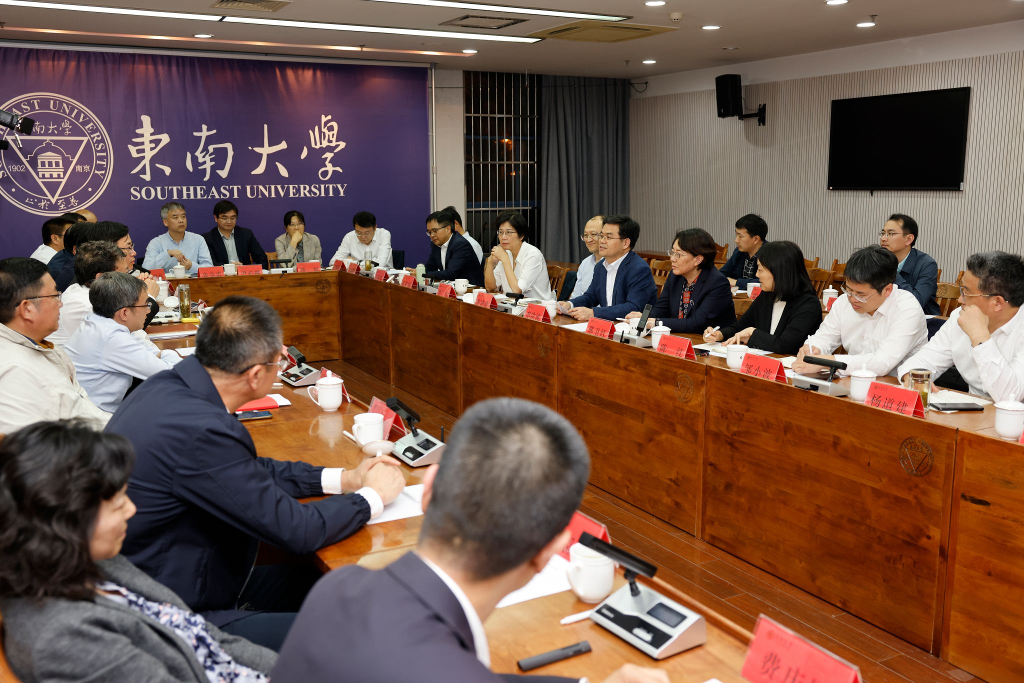 东南大学党委书记左惟、常务副校长吴刚、副校长钟文琪、党委副书记邢纪红出席调研活动。会上,左惟对beat365中文官方网站代表团来东南大学调研表示热烈欢迎,并介绍了东南大学“三个服务”等先进做法。他指出,东南大学与beat365中文官方网站同宗同源,具有长久的交流合作历史,在人才培养、科学研究以及文化交流合作等方面取得了丰硕成果,希望以本次座谈会为契机,双方进一步深化合作,强化校际交流,为教育强国建设作出新的更大贡献。邢纪红介绍了东南大学事业发展情况。相关部门负责人各自介绍了部门工作情况。