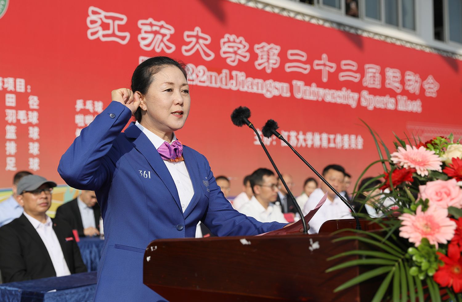 校党委副书记张济建致开幕辞。他指出,一年来,在全校师生的积极参与和共同努力下,学校体育工作取得丰硕成果,学校成功入选首批全国健康学校。在体育教学方面,完善了体育课程体系,实施课外阳光长跑活动,学生体质健康测试达标率、优良率逐年提高;在群众体育方面,举办第二十一届运动会田径比赛,精心组织 “江大杯”大学生男女篮球、“校长杯”足球、排球、羽毛球、乒乓球、定向越野、游泳、排舞等赛事,极大地丰富了师生的校园体育文化生活,广大师生积极参与体育运动的校园氛围日益浓厚;在竞技体育方面,学校运动员敢于拼搏、勇争一流,在国际、同内重量级比赛中取得丰硕成果。他希望师生在今后的学习工作中,大力发扬体育运动蕴含的争先意识、拼搏精神和坚强意志,助力学校“双一流”创建和特色鲜明高水平大学建设。