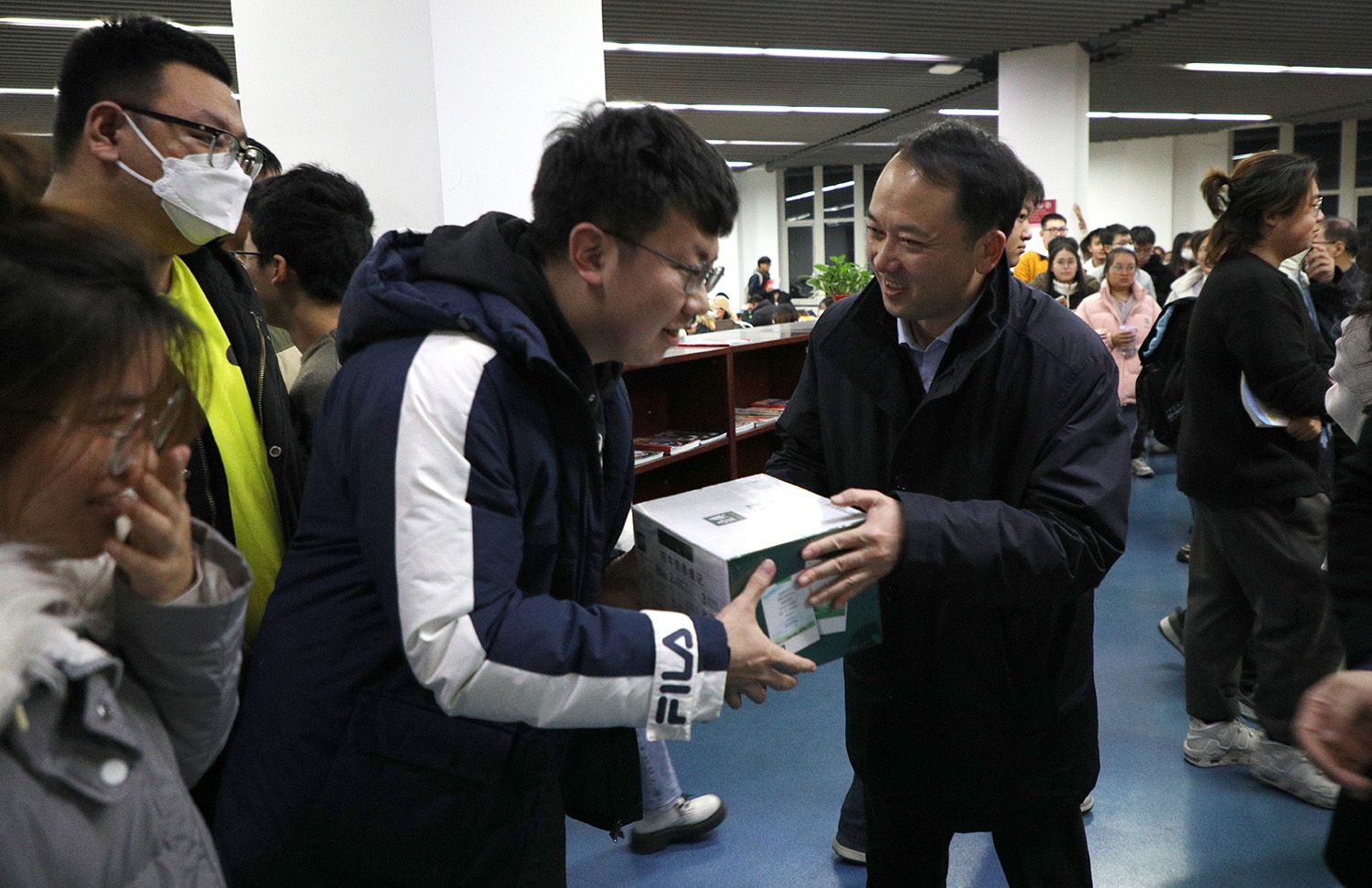 11月30日晚10点,校长邢卫红、副校长任旭东一行走进图书馆,看望考研学子,发放慰问品近千份,为奋战考研的莘莘学子送去亲切关怀和温暖祝福。
