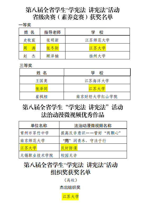 近日,省教育厅办公室下发了《省教育厅关于公布第八届全省学生“学宪法 讲宪法”活动结果的通知》,beat365官网法学院学生周涛(指导教师张冬阳)获得素养竞赛一等奖,张泽同获得三等奖;beat365官网推荐的动漫微视频《反奸防谍》获评法治动漫微视频优秀作品;学校获评杰出组织奖。