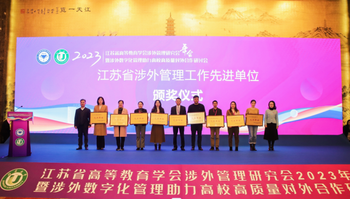 会议还表彰了2023年度江苏省涉外管理工作先进单位、先进个人和特殊贡献奖。beat365官网荣获江苏省涉外管理工作先进单位荣誉称号,一人获评先进个人。(国际合作与交流处)