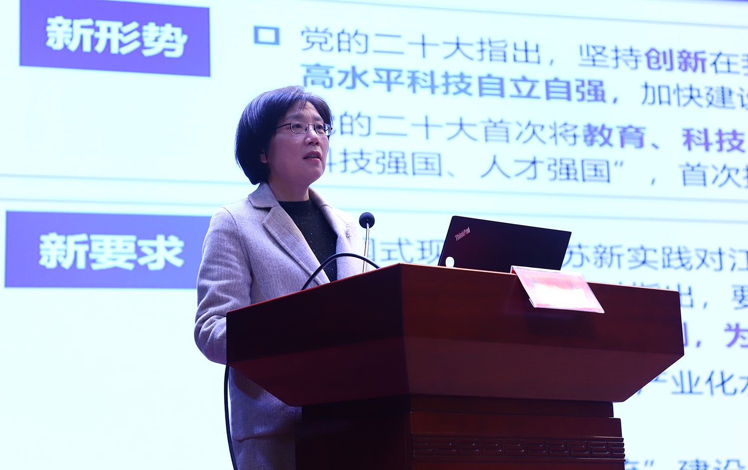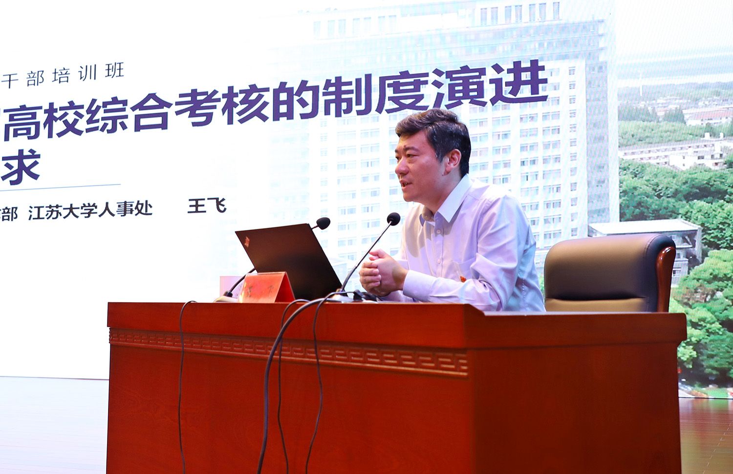 校党委教师工作部部长、人事处处长王飞作《江苏高校综合考核的制度演进与实践要求》专题报告,阐述了习近平总书记关于考核工作的重要论述和理念发展,详细介绍了省属高校综合考核的制度演进,重点介绍了今年省考政策新精神、新变化、新要求。