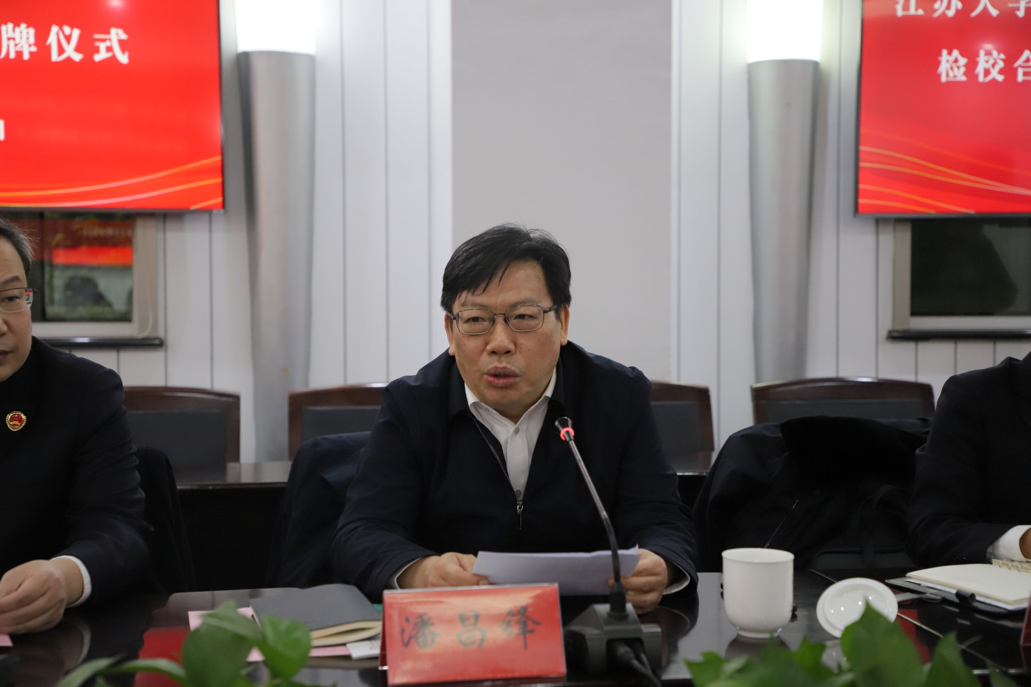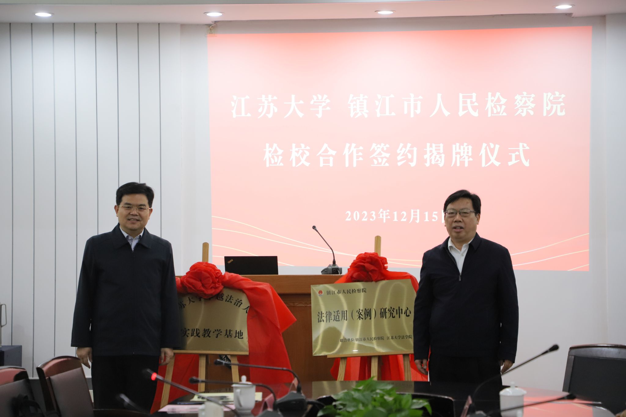 李洪波与潘昌锋共同为“beat365中文官方网站卓越法治人才实践教学基地”“镇江市人民检察院法律适用(案例)研究中心”揭牌。