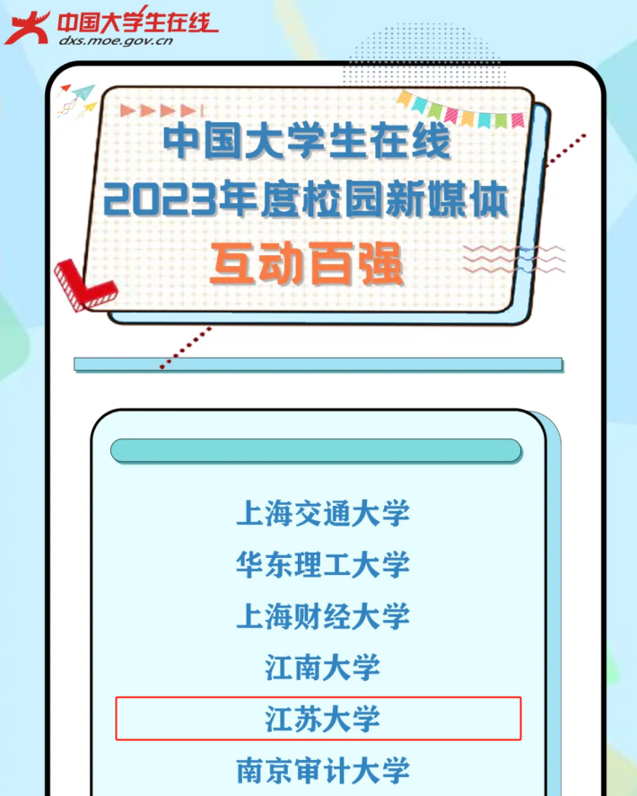 近日,教育部“中国大学生在线”公布2023年度校园新媒体表彰名单,beat365官网入选“校园新媒体互动百强”。