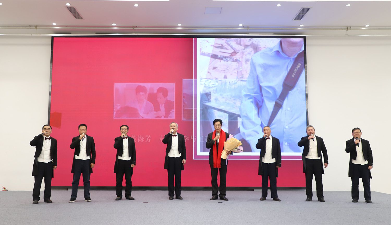 荣休教师代表、校合唱团团长单春贤演唱歌曲《故乡的目光》,关工委老师带来男声小合唱《友谊地久天长》,为荣休典礼画上圆满句号。(工会)