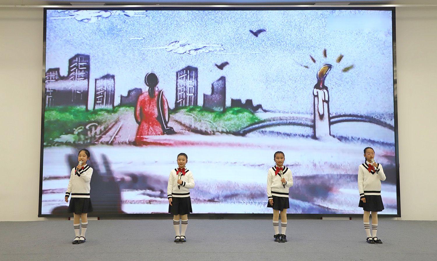 典礼上,附属学校的学生表演了诗朗诵《感恩老师》。