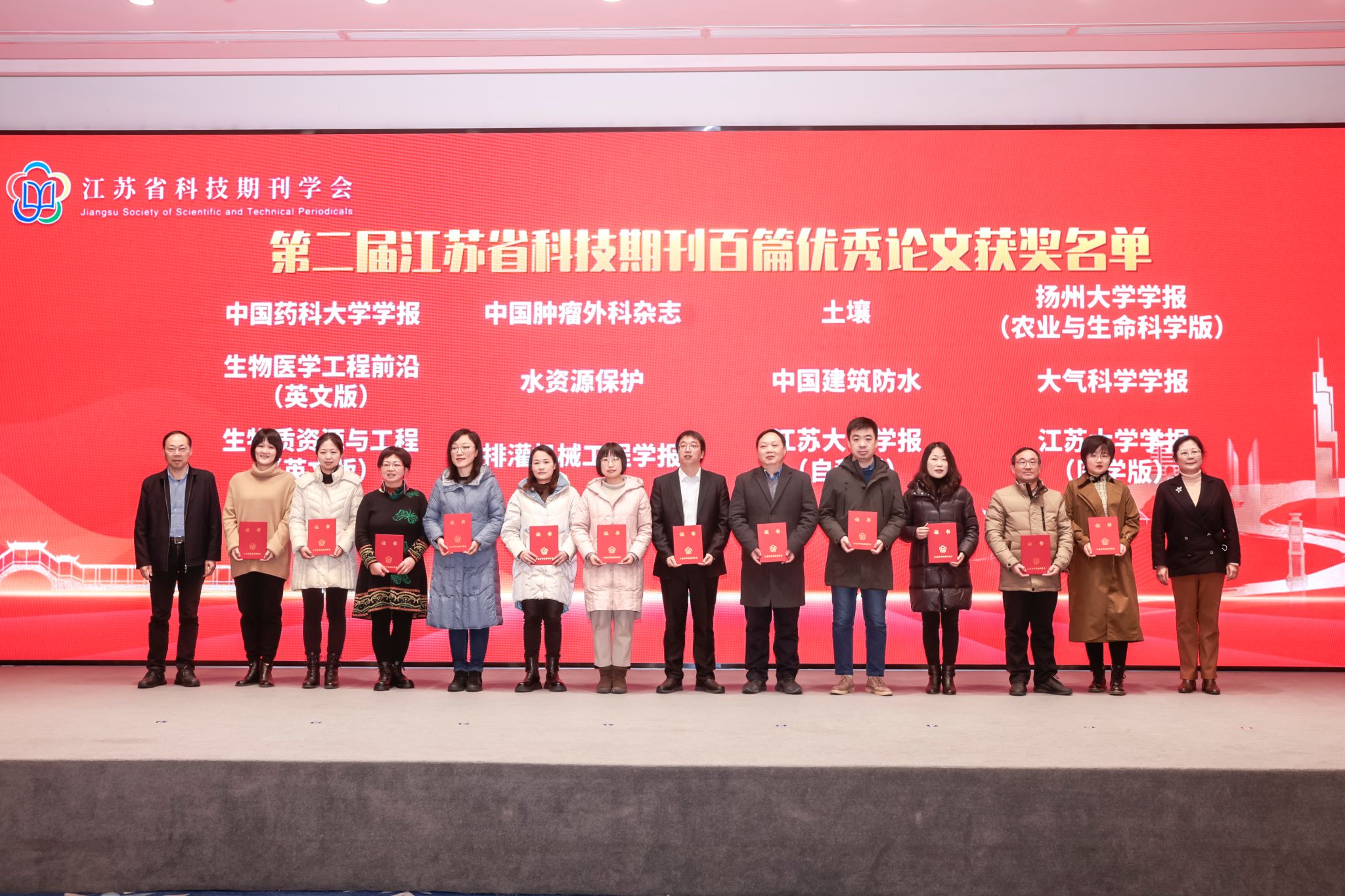 12月27日,由江苏省科技期刊学会(简称“学会”)、江苏省期刊协会科技期刊专委会主办的第十二届江苏科技期刊发展论坛暨第二届江苏省科技期刊百篇优秀论文颁奖仪式在南京召开。beat365官网校长、学会专家咨询委员会主任委员邢卫红开幕式致辞,并作为特邀嘉宾,为百优论文获奖代表颁奖。在本届江苏省科技期刊百篇优秀论文遴选中,beat365官网学报自然版、医学版和《排灌机械工程学报》共4篇论文入围。