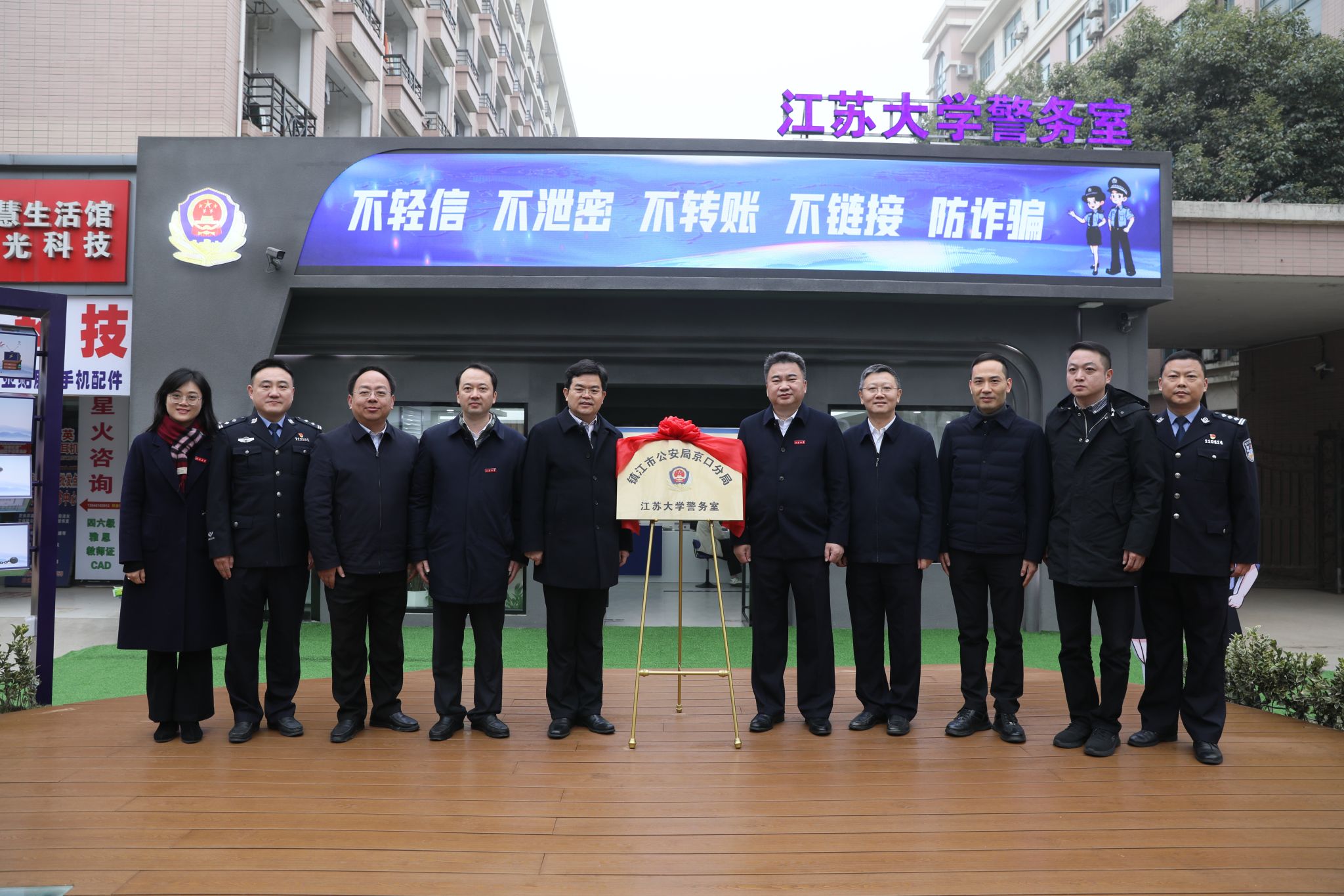 12月29日上午,镇江市公安局京口分局beat365中文官方网站警务室正式揭牌。beat365中文官方网站党委书记李洪波,镇江市副市长、公安局局长王文生共同为警务室揭牌。