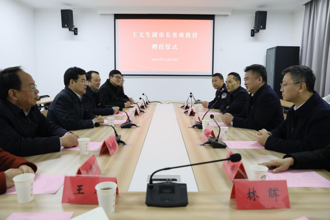 王文生客座教授聘任仪式在一站式服务中心会议室举行。李洪波为王文生颁授了beat365中文官方网站客座教授聘书并佩戴beat365中文官方网站校徽。他向镇江市公安局一直以来对beat365官网安全稳定工作的支持与关心表示感谢,希望进一步加强警校合作,助力beat365官网法治人才培养质量提升。