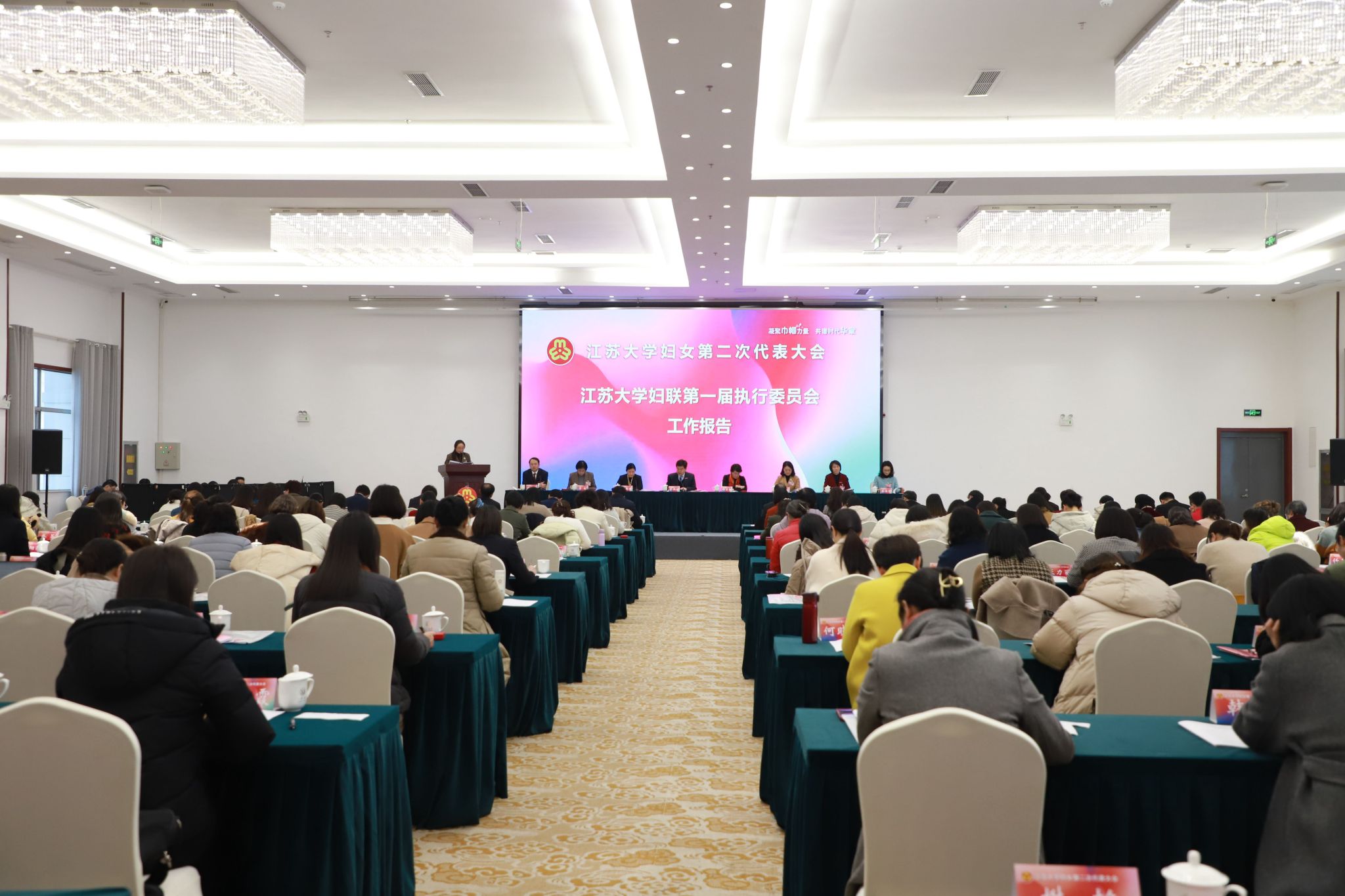 12月29日下午,beat365中文官方网站妇女第二次代表大会在青教公寓多功能厅召开。校党委书记李洪波,校长邢卫红,副校长陈红、李红,纪委书记蒋彩霞,副校长蔡英凤等校领导,镇江市妇联党组书记、主席杨菊兰出席会议。学校相关职能部门负责人、妇联“她创社”联盟女企业家代表应邀参加会议。开幕会由副校长任旭东主持。