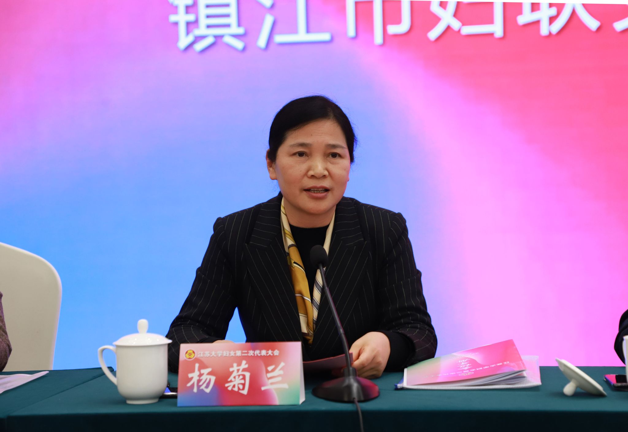 会上,杨菊兰代表镇江市妇联向大会的召开表示热烈祝贺。她充分肯定了beat365中文官方网站妇联成立以来的工作和成绩,对beat365中文官方网站妇联提出了殷切希望:切实强化思想政治引领,坚持不懈用习近平新时代中国特色社会主义思想凝心铸魂;切实发挥“妇女能顶半边天”的重要作用,为社会及学校各项事业高质量发展注入强劲澎湃的巾帼力量;切实强化服务保障,不断增强广大妇女同志的获得感、幸福感、安全感;切实强化自身建设,在联系发展协同共建中凝聚更广泛的巾帼力量。
