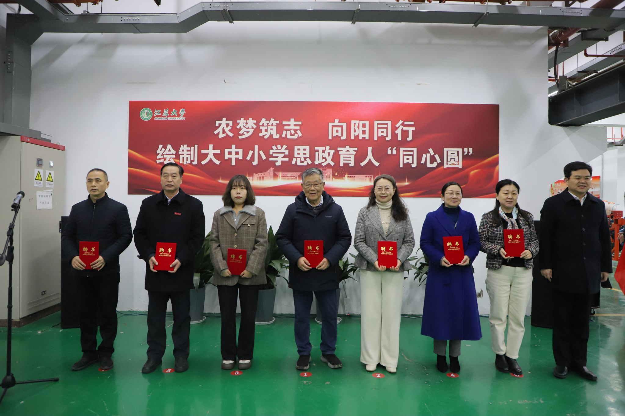1月4日,由党委宣传部主办的“农梦筑志 向阳同行”绘制大中小学思政育人“同心圆”主题活动在耒耜大楼举行。“全国脱贫攻坚楷模”“时代楷模”赵亚夫,校党委书记李洪波,校党委常委、副校长李红,新华日报社镇江分社社长晏培娟,校党委常委、党委宣传部部长、党委统战部部长吴麟麟,以及镇江新区永兴农机机械化专业合作社、农业工程学院、马克思主义学院、思想政治工作研究院、beat365中文官方网站附属学校的师生代表参加活动。活动仪式由李红主持。
