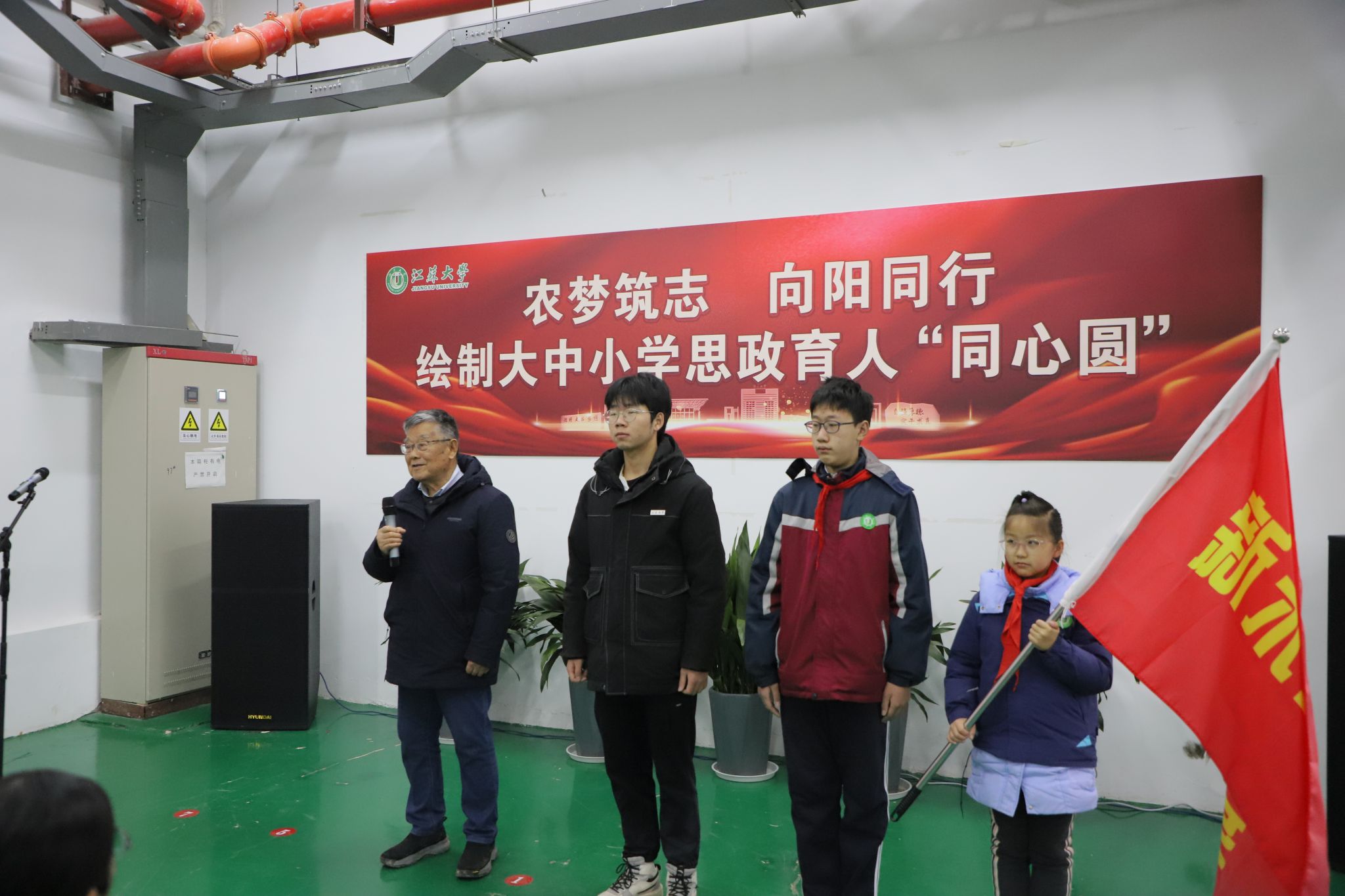 农业工程学院学生代表、2022级博士生刘朋、附属学校八(1)班学生刘可亲、附属学校三(2)班学生周艺涵,在发言中表示将时刻牢记新禾先锋队的责任和使命,发扬吃苦耐劳、不怕困难的精神,成为江大农机的未来先锋。