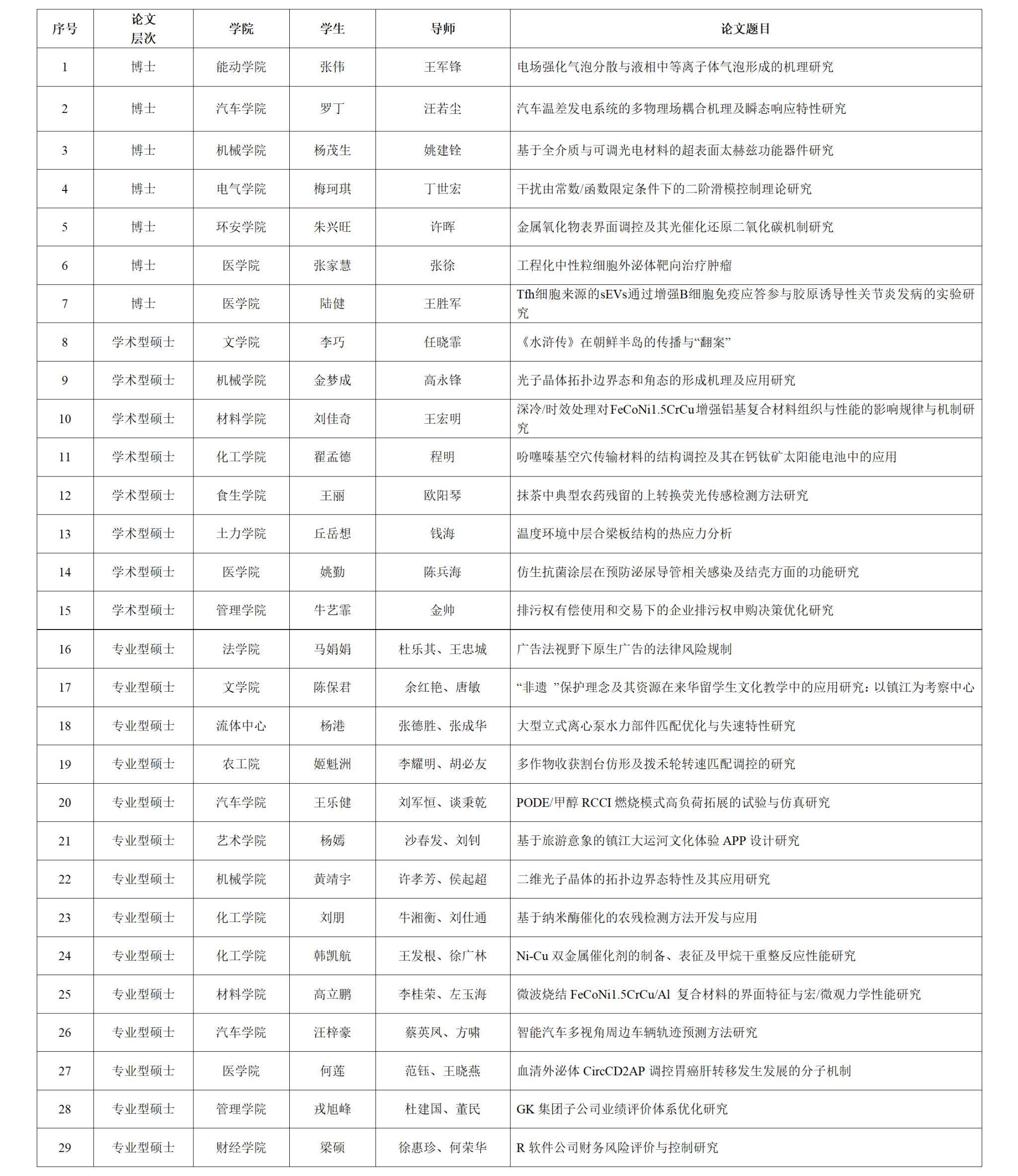 近日,江苏省学位委员会办公室、江苏省教育厅公布了2023年江苏省优秀博士硕士学位论文评选结果,beat365官网共入选29篇,其中优秀博士学位论文7篇、优秀学术型硕士学位论文8篇、优秀专业型硕士学位论文14篇。省优博论文数创历年来新高,省优专硕论文数列全省第五,省优硕论文总体数量比2022年翻了一番。