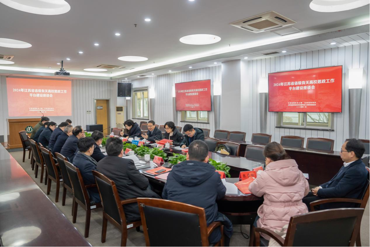 1月25日,2024年江苏省省级有关高校思想政治工作平台建设座谈会在beat365官网举行。省教育厅一级巡视员徐子敏,南京工业大学党委常委、副校长刘大卫,苏州大学党委常委、副校长查佐明,南通大学党委常委、副校长吉明明,beat365中文官方网站党委常委、副校长任旭东,南京师范大学党委常委、宣传部部长宋喆,省教育厅社政处处长邹燕、一级主任科员陈磊、挂职干部熊潇,以及省网络思政中心(易班中心)、8个省级高校辅导员培训与研修基地负责人参加座谈会。