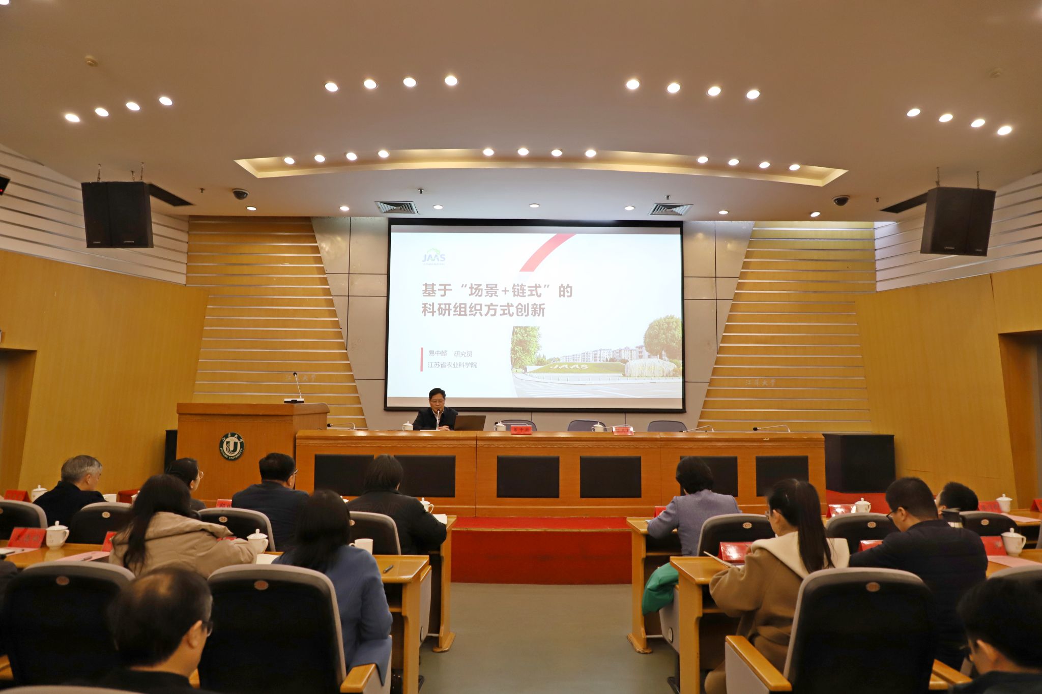 易中懿以江苏省农业科学院科技创新、团队协同、成果转化等方面的探索和实践为例,围绕发挥技术创新对产业的“支撑+引领”作用,打造“场景+链式”的技术创新典范,构建“团队+协同”的科研组织方式,探索“公益+市场”的成果转化模式,重塑“理念+文化”的创新生态五个方面,进行了全面、深入、系统的阐释。报告深入浅出,易中懿还与师生进行了互动交流。