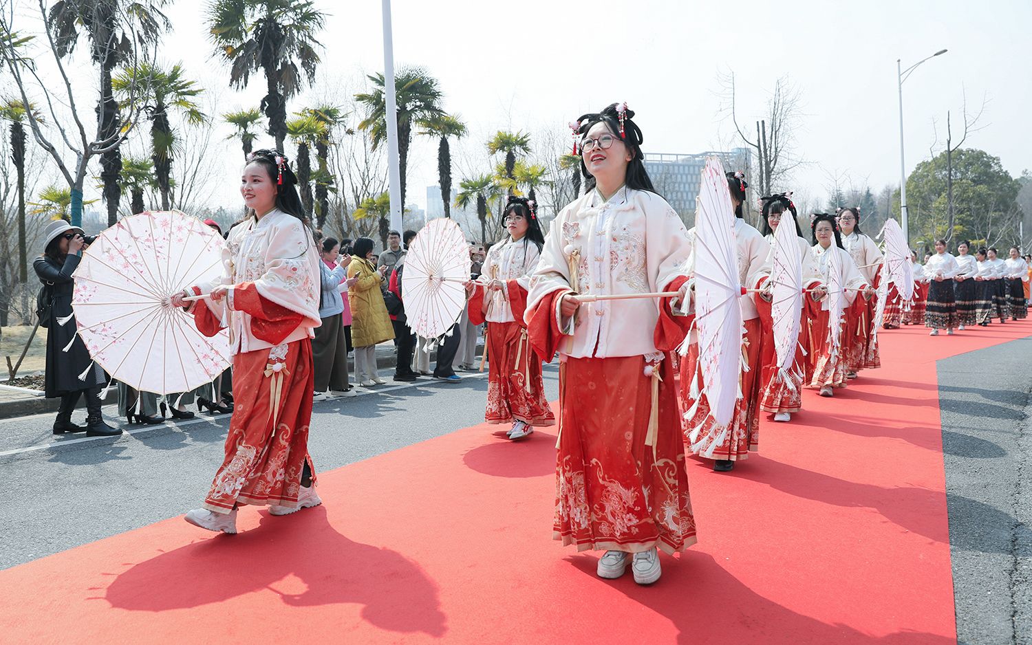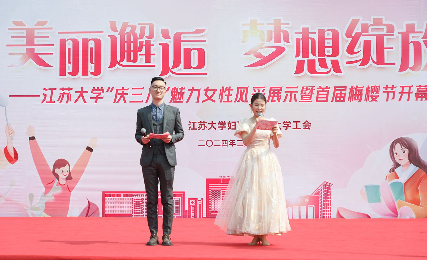 早春江大,处处是生机勃勃的景象。3月8日,是第114个国际劳动妇女节,学校在梅园举办“美丽邂逅,梦想绽放”庆祝“三八”国际妇女节活动暨首届梅樱节开幕式。由女教工、女大学生、女企业家组成的33支队伍共聚梅园,借满园春色,用“红毯秀”的形式展示女性风采,庆祝自己的节日。
