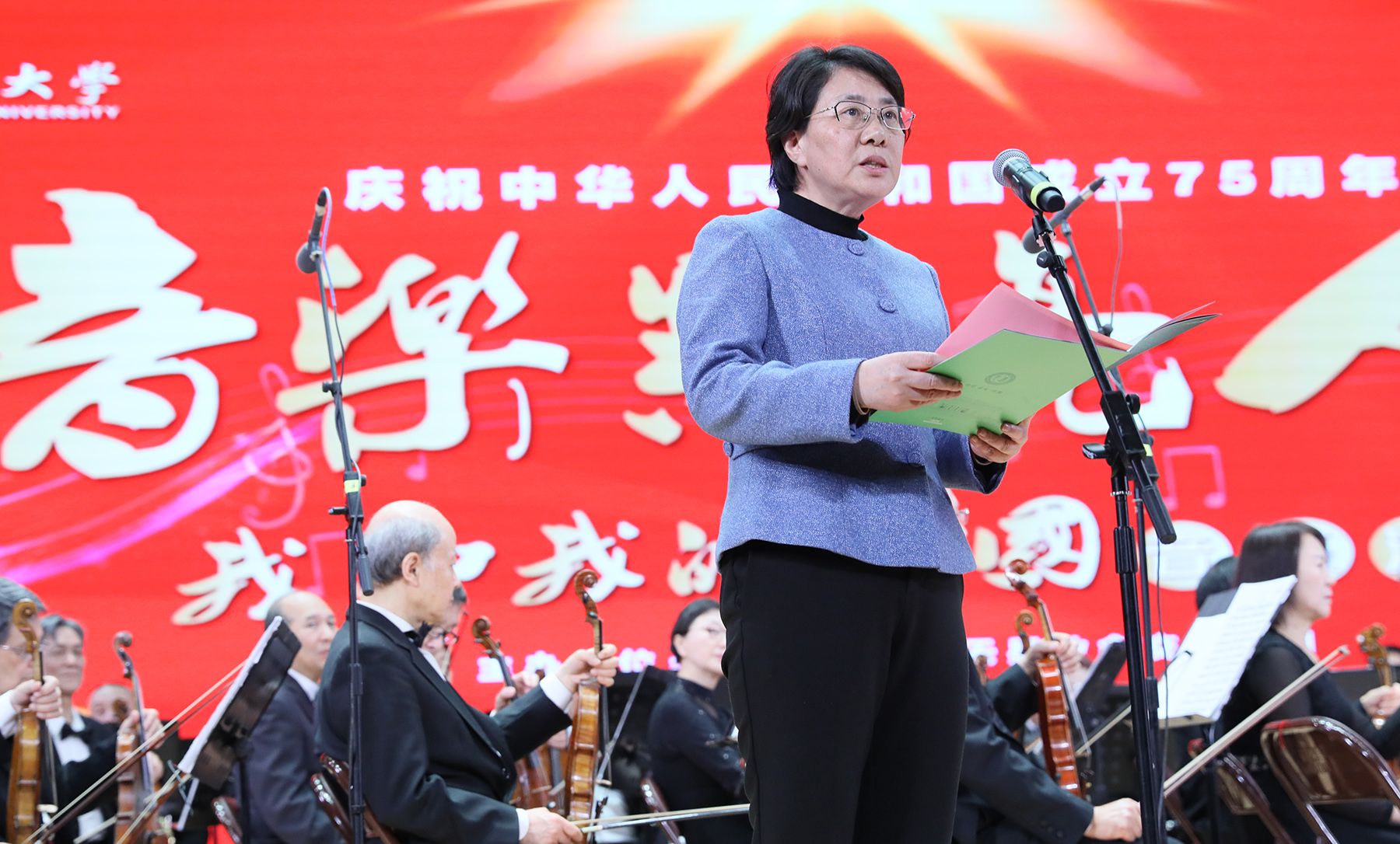 邢卫红说,多年来,乐团以生动的音乐示范和高尚的公益追求,向高校师生普及高雅艺术,致力于提高青年学子的文化和艺术修养,得到了广大师生和社会各界的广泛好评。她指出,本次音乐沙龙是beat365中文官方网站庆祝中华人民共和国成立75周年的重要活动之一,既是对祖国的深情礼赞,也是一堂生动的音乐思政课,希望大家以饱满的热情去感受、欣赏、领悟高雅艺术的独特魅力,以更加从容自信的心态、更加昂扬向上的精神、更加务实有力的作风投入到工作和学习中去,以实际行动和优异成绩迎接中华人民共和国成立75周年。