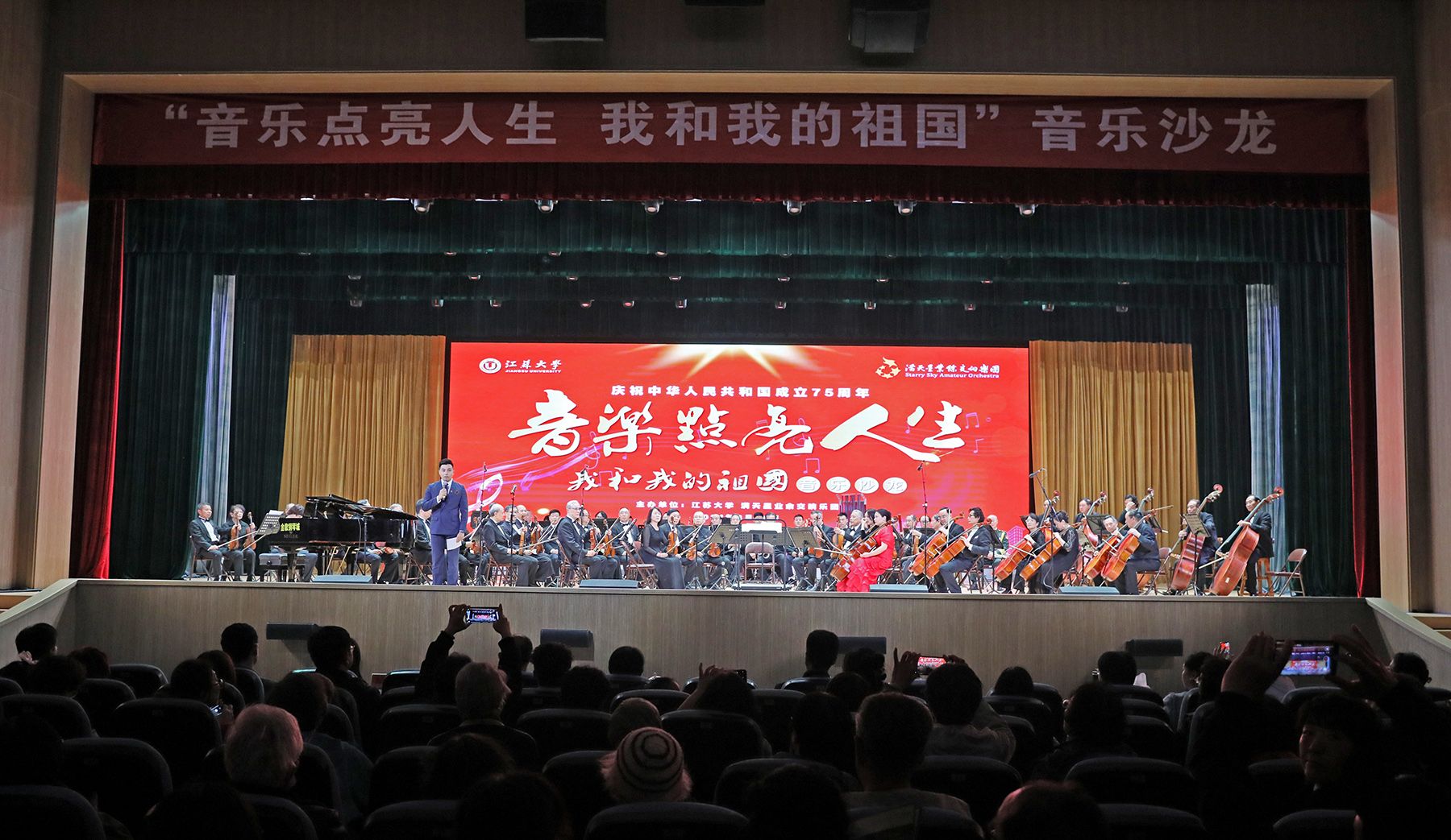 满天星业余交响乐团成立于2013年初,是在原党和国家领导人李岚清同志的关怀支持下,由全国16个省市和香港特别行政区的100多位退休高级知识分子、高级干部、高级军官组建而成。乐团以“不忘本来,吸收外来,面向未来”为宗旨,以“爱乐、博雅、至诚、奉献”为团训。乐团成员们在本行业取得突出成就的同时,用自身对音乐的热爱,以生动的音乐示范和高尚的公益追求,推广普及高雅艺术,先后到过百余所高校演出,此次是乐团成立以来的第188场演出。(党委宣传部)