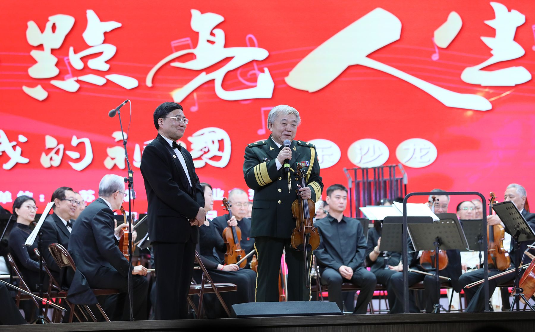 伴随着热烈欢快的《卡门序曲》,音乐沙龙正式拉开序幕。小提琴二重奏《我的祖国》以悠扬动听的旋律点燃听众的爱国情怀;世界名曲《第二圆舞曲》优雅神秘、《如歌的行板》舒缓优美、《蝙蝠序曲》华丽流畅;《红色娘子军》组曲铿锵有力、节奏鲜明,再现了娘子军战士的英雄气概和勇敢坚强;罗马尼亚民间舞曲《春天》、中国小提琴独奏曲《新疆之春》让现场观众感悟了中外民族乐曲的独特魅力;乐团女高音独唱《长江之歌》大气磅礴、震撼人心;《北京喜讯到边寨》以激情的旋律,把现场气氛推向高潮……乐团成员精湛的演奏技艺与丰沛的情感烘托,令现场观众沉浸在高雅艺术的海洋之中。