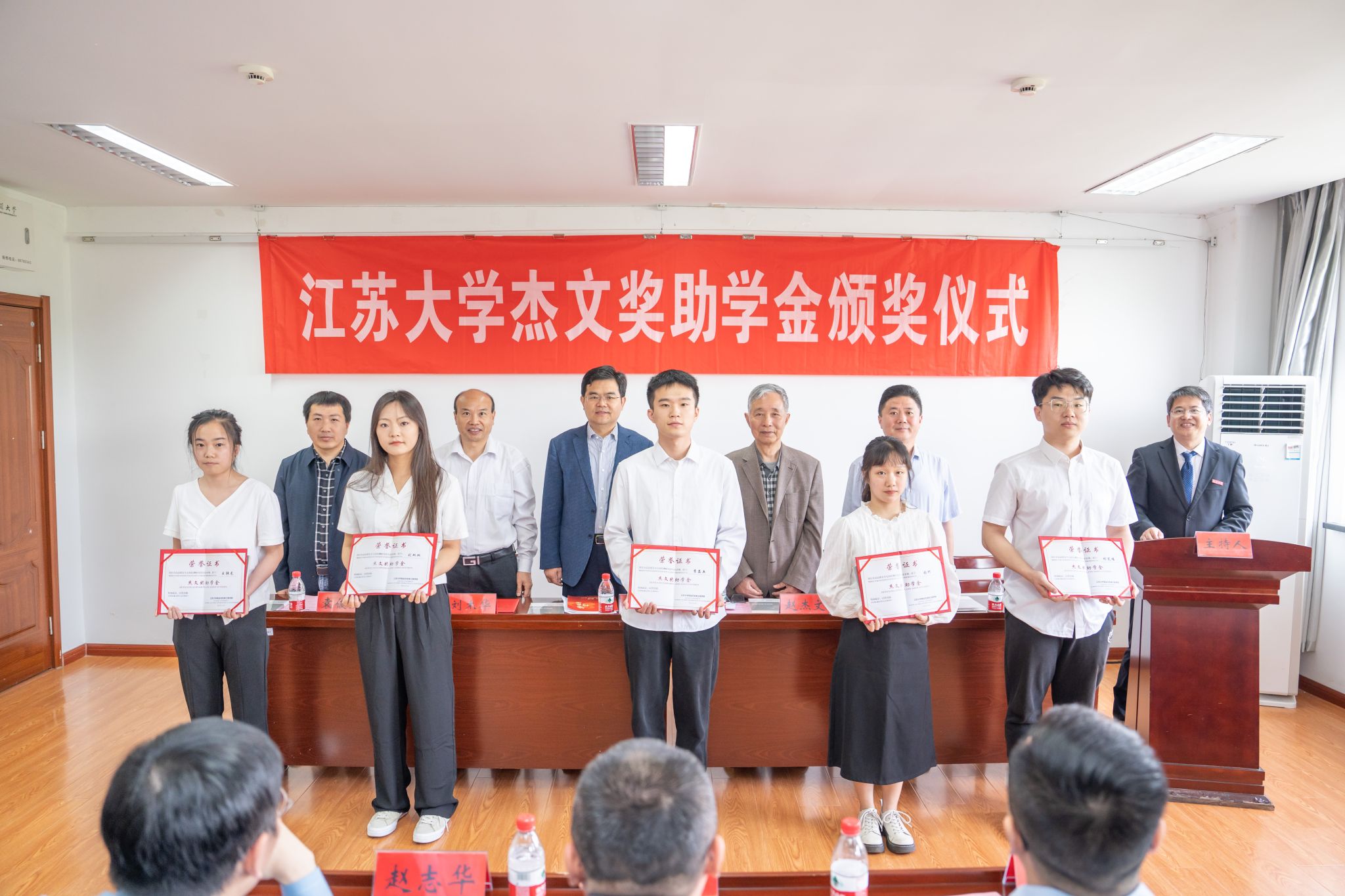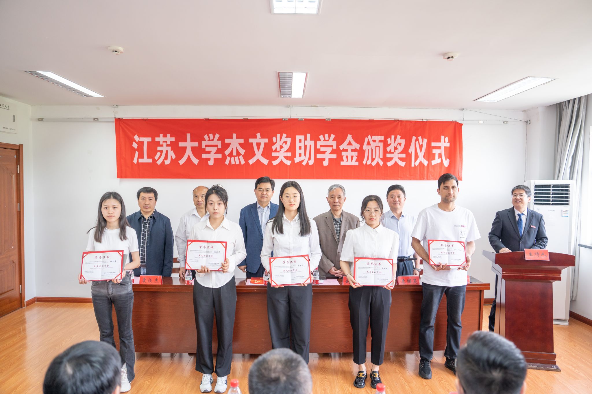 5月12日,2024年度beat365中文官方网站“杰文奖助学金”颁奖仪式在文华科研楼报告厅举行,10名研究生获得资助。校党委书记李洪波出席颁奖仪式并讲话,副校长邹小波,校友总会秘书长李国昊,研究生院、食品与生物工程学院相关负责人,捐资校友代表、教师代表和食品无损检测方向研究生等近50人参加会议。