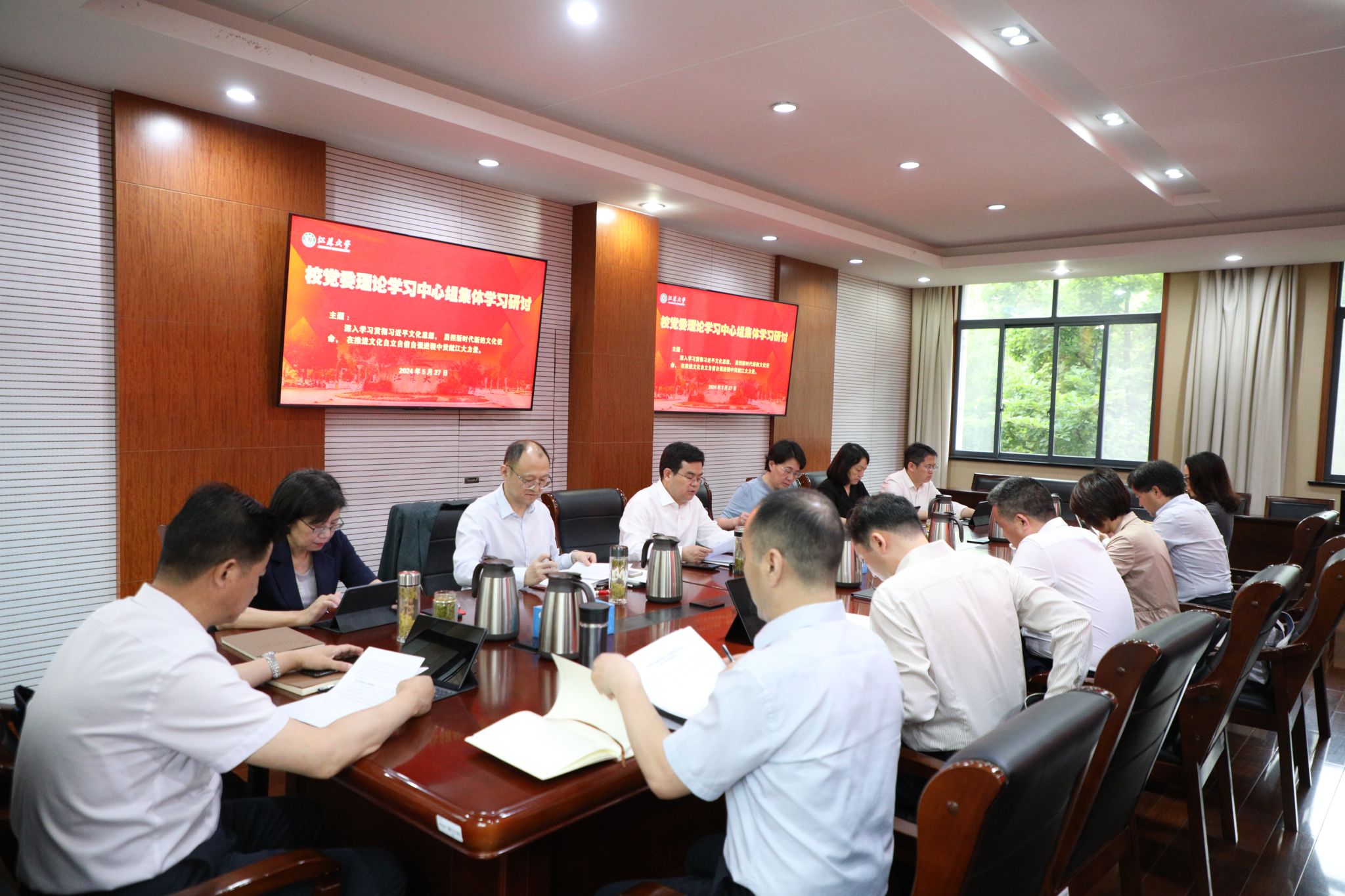 5月27日,校党委理论学习中心组在行政一号楼201会议室围绕学习贯彻习近平文化思想开展集体学习研讨。校党委理论学习中心组全体成员参加学习,集体学习研讨由校党委书记李洪波主持。