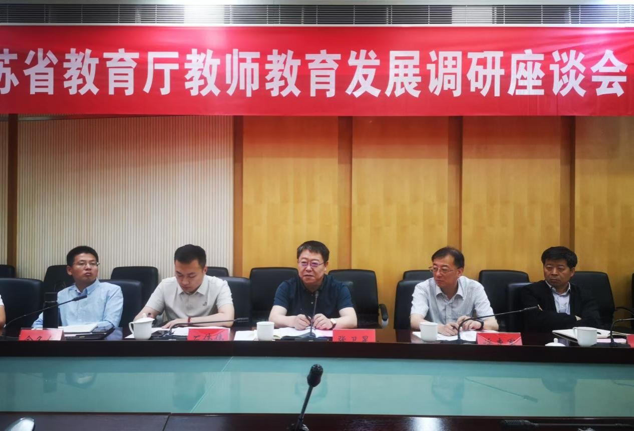 5月27日,江苏省教育厅教师教育发展调研座谈会在beat365官网举行。省教育厅教师工作处处长张卫星,三级调研员许李军,江苏省教师教育专业指导委员会秘书长冯建军,扬州大学副校长王承堂,beat365中文官方网站副校长邹小波出席座谈会。会议由张卫星主持。