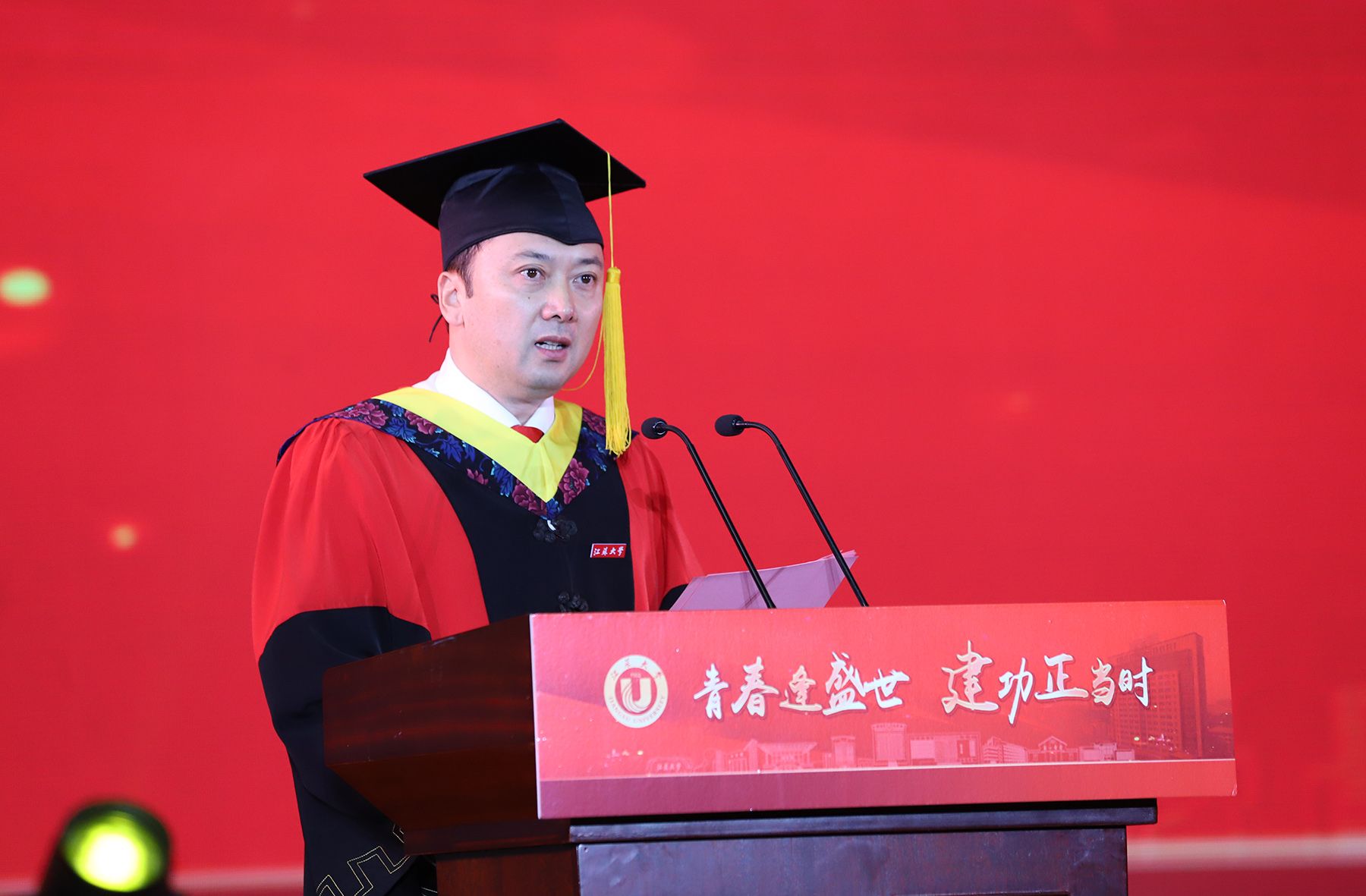 教师代表、食品与生物工程学院副院长石吉勇,校友代表、深圳铭利达精密技术股份有限公司董事长、校友企业家联盟主席陶诚,毕业研究生代表、材料科学与工程学院陈乐利同学,毕业本科生代表、机械工程学院刘欣然同学,毕业留学生代表、医学院杨靖同学分别在典礼上发言。