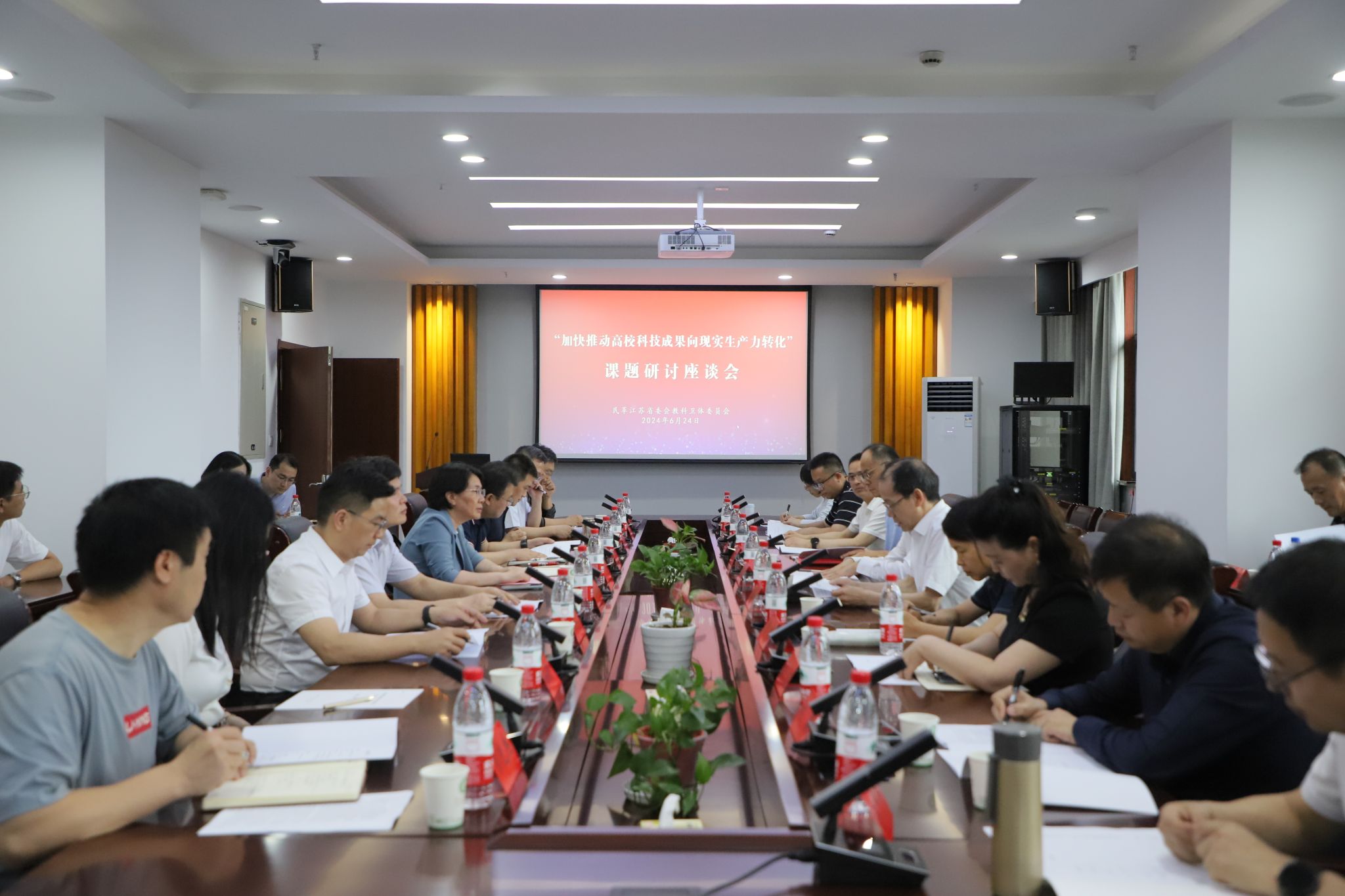 6月24日,民革江苏省委会副主委、教科卫体委员会主任、民革南京市委会主委程永波一行来beat365官网,围绕“加快推动高校科技成果向现实生产力转化”课题开展研讨交流。民革江苏省委会副主委、校长邢卫红出席座谈会并致辞。民革江苏省委会教科卫体委员会副主任、民革镇江市委会主委王加友主持座谈会。