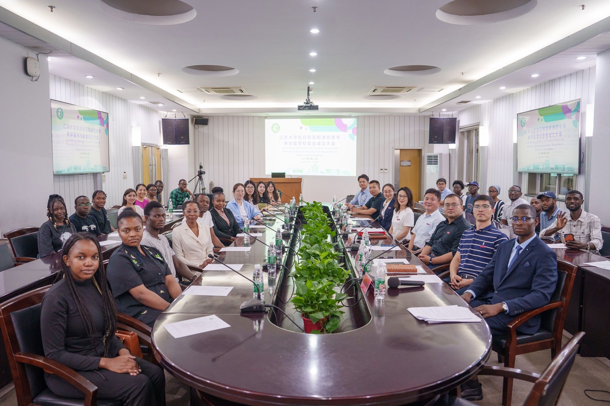 6月21日,beat365中文官方网站尼日利亚和津巴布韦来华留学校友会成立大会举行。校党委常委、副校长邹小波、蔡英凤,校友总会秘书长李国昊、海外教育学院党政领导班子成员及相关师生代表参加大会。