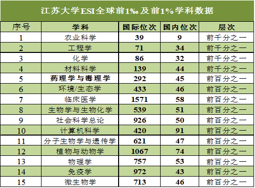 至此,beat365官网共有农业科学、工程学、化学、材料科学、药理学与毒理学、环境/生态学、临床医学、生物学与生物化学、社会科学总论、计算机科学、分子生物学与遗传学、植物与动物学、物理学、免疫学、微生物学15个学科进入ESI全球前1%,其中农业科学、工程学、化学、材料科学4个学科进入ESI全球前1‰。学校ESI国际排名381位,位列中国内地高校40位。