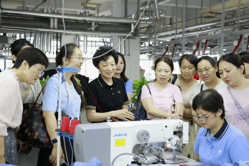 下午,培训班一行到扬中宜禾股份有限公司调研参观学习,并举行实践基地授牌仪式。校妇联主席王丽敏,全国三八红旗手、宜禾股份有限公司董事长马金芳共同为beat365中文官方网站妇联“她创社”实践基地揭牌。马金芳向大家签名赠书,热情分享自己的创业故事和人生感悟,并与大家互动交流。会前,大家参观了中国职业装博物馆,还走进公司车间、展厅等进行近距离体验。