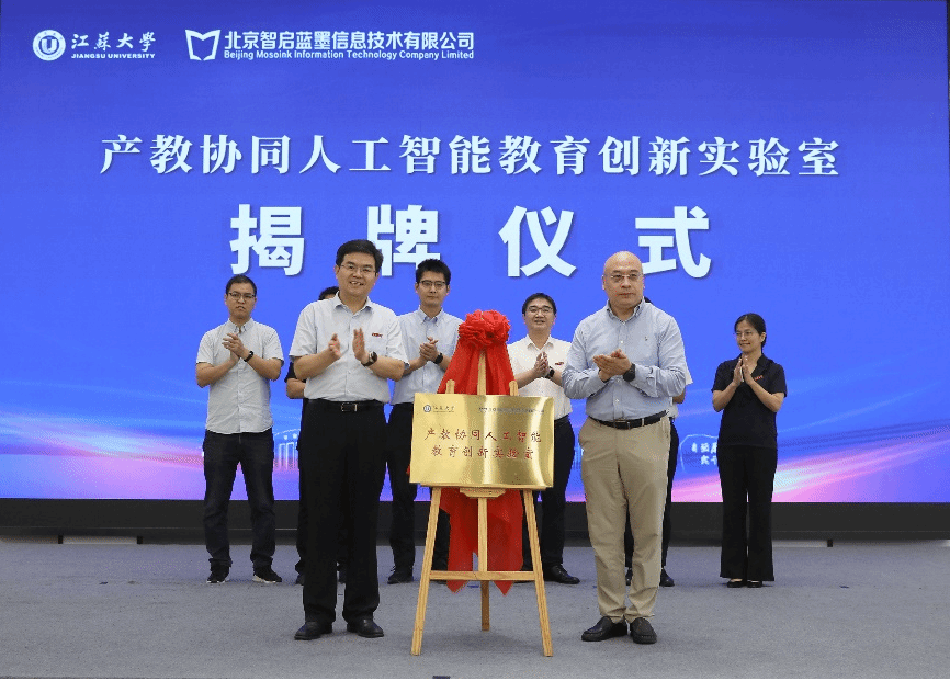 李洪波、靳新共同为学校产教协同人工智能教育创新实验室揭牌。