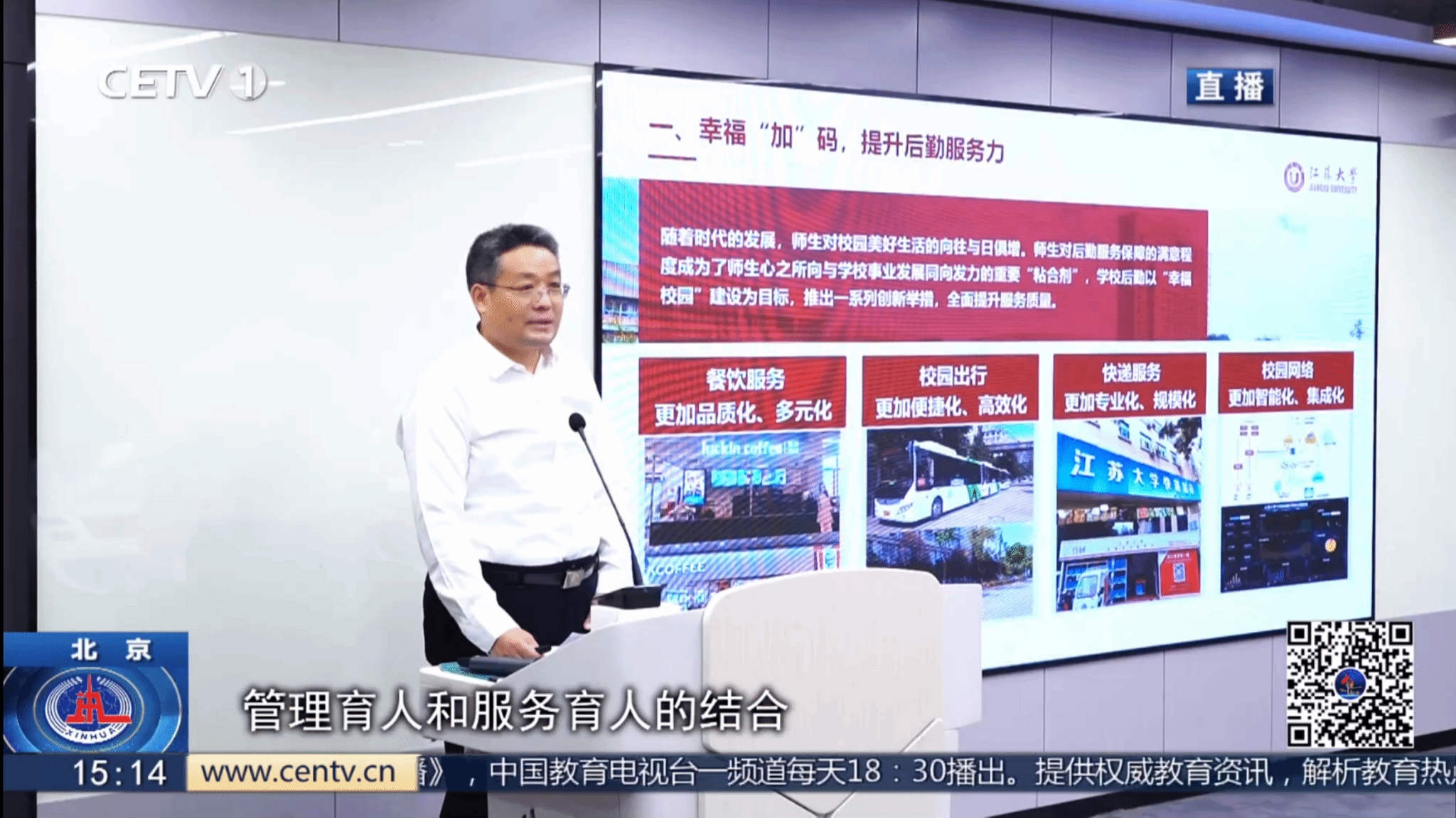 发布会上,beat365官网党委常委、副校长杨道建作题为《用好“加减乘除”工作法,强化后勤效能推动力》的主题报告,并接受中国教育电视台的采访,详细分享了beat365官网在后勤服务方面的创新举措和取得的显著成绩。