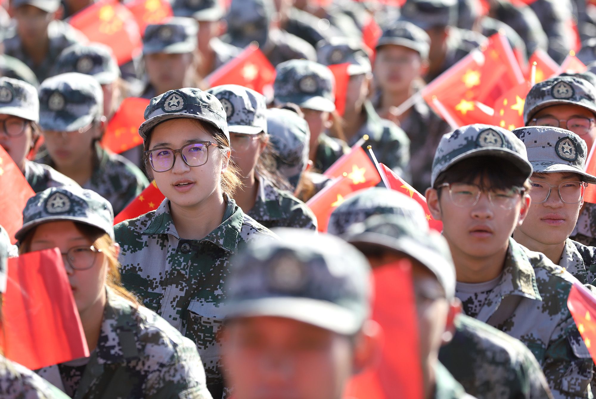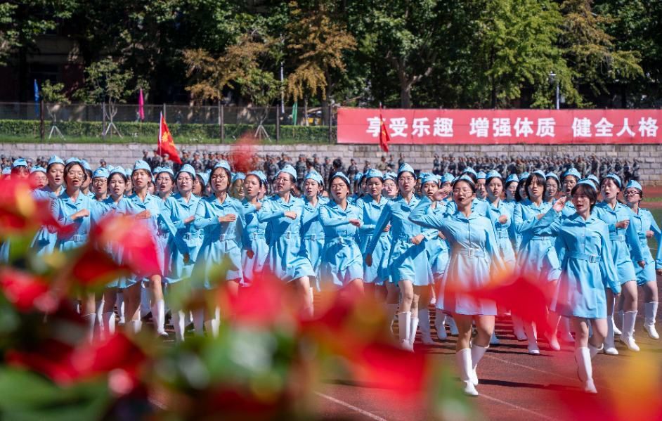 开学典礼后举行了2024级本科生军训成果汇报大会。
