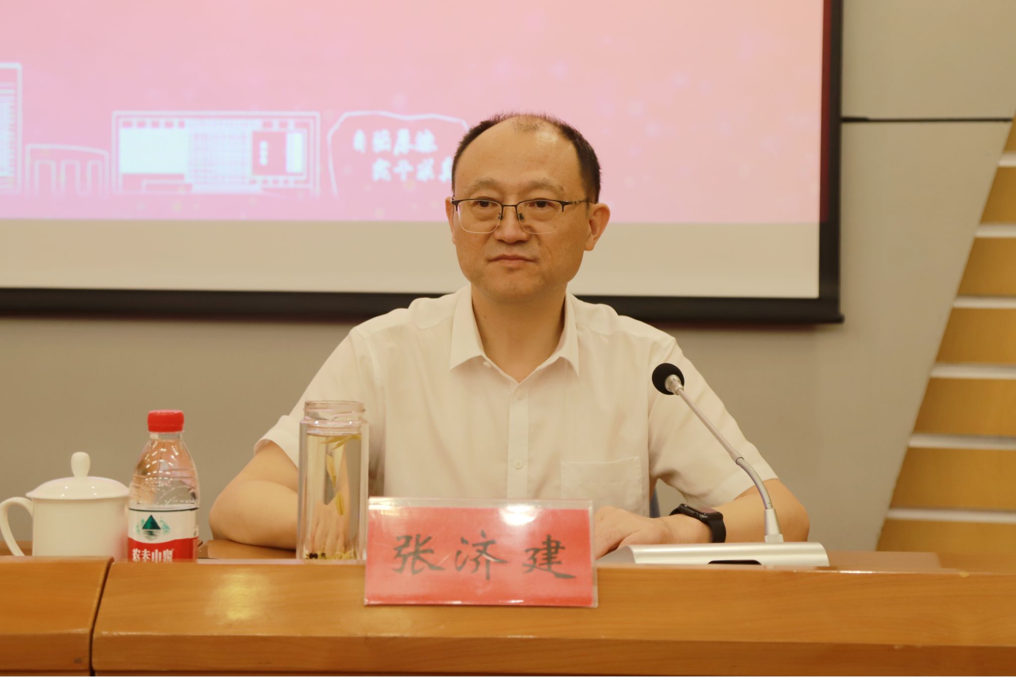 张济建从“‘学’字当头,推动党纪学习教育‘见真章’;‘导’字为重,推动党纪学习教育‘动真格’;‘通’字为要,推动党纪学习教育‘求真效’”三方面总结学校党纪学习教育开展情况。