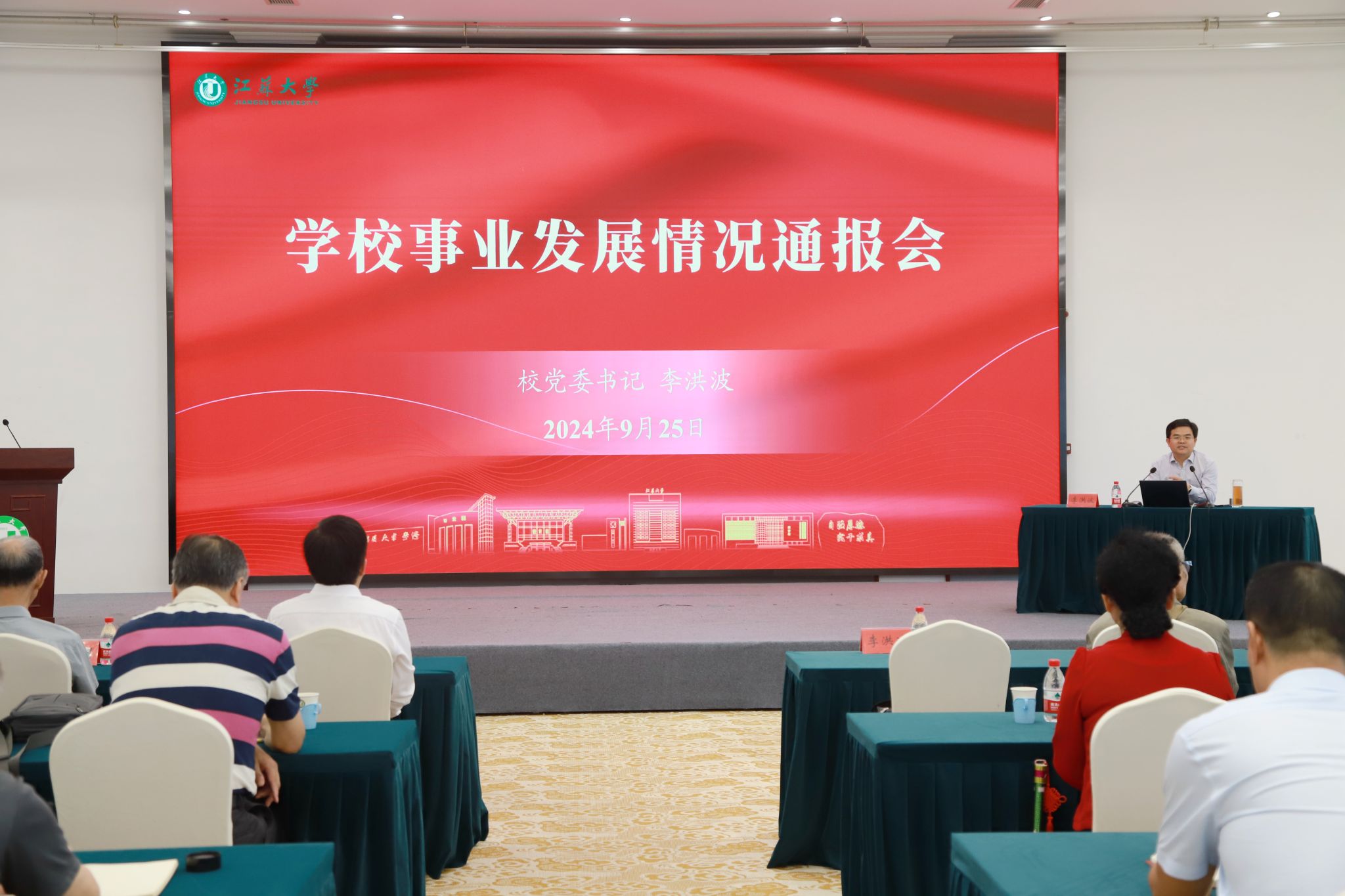 9月25日下午,老同志校情通报会在青教公寓多功能厅举行,校党委书记李洪波通报学校事业发展情况。学校老领导,离退休党工委委员,离退休党支部书记、委员,关工委常委,老年协会负责人和部分老同志代表参加会议。会议由副校长王景全主持。
