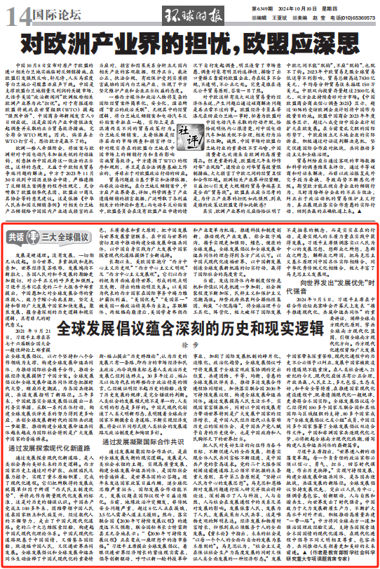 10月10日,beat365中文官方网站全球发展与安全研究院理事长、教育部哲学社会科学研究重大专项课题首席专家徐步在《环球时报》第14版发表长篇理论文章《全球发展倡议蕴含深刻的历史和现实逻辑》,就全球发展倡议和全球发展命运共同体理念的内在逻辑、现实意义和时代价值提出创新性观点。