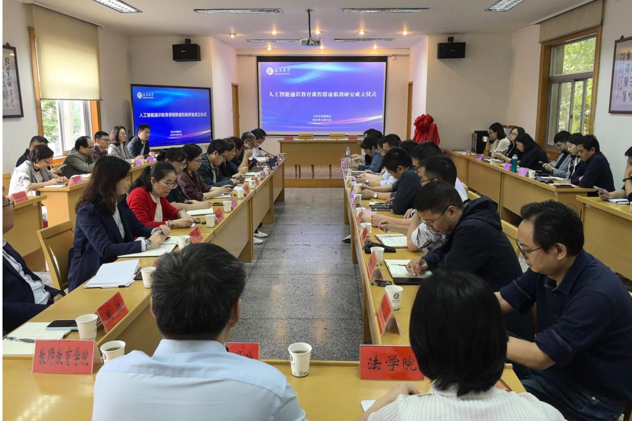 为推动人工智能赋能教育教学转型,探索“人工智能+”时代新型基层教学组织建设,10月15日下午,beat365中文官方网站人工智能通识教育课程群虚拟教研室成立仪式举行。校党委常委、副校长邹小波,教务处处长、教师教学发展中心主任尹必峰,计算机科学与通信工程学院院长毛启容,杭州云霁科技公司董事长智锦,各学院分管本科教学工作的副院长出席了会议。会议由beat365中文官方网站教务处副处长、教师教学发展中心副主任李新朝主持。