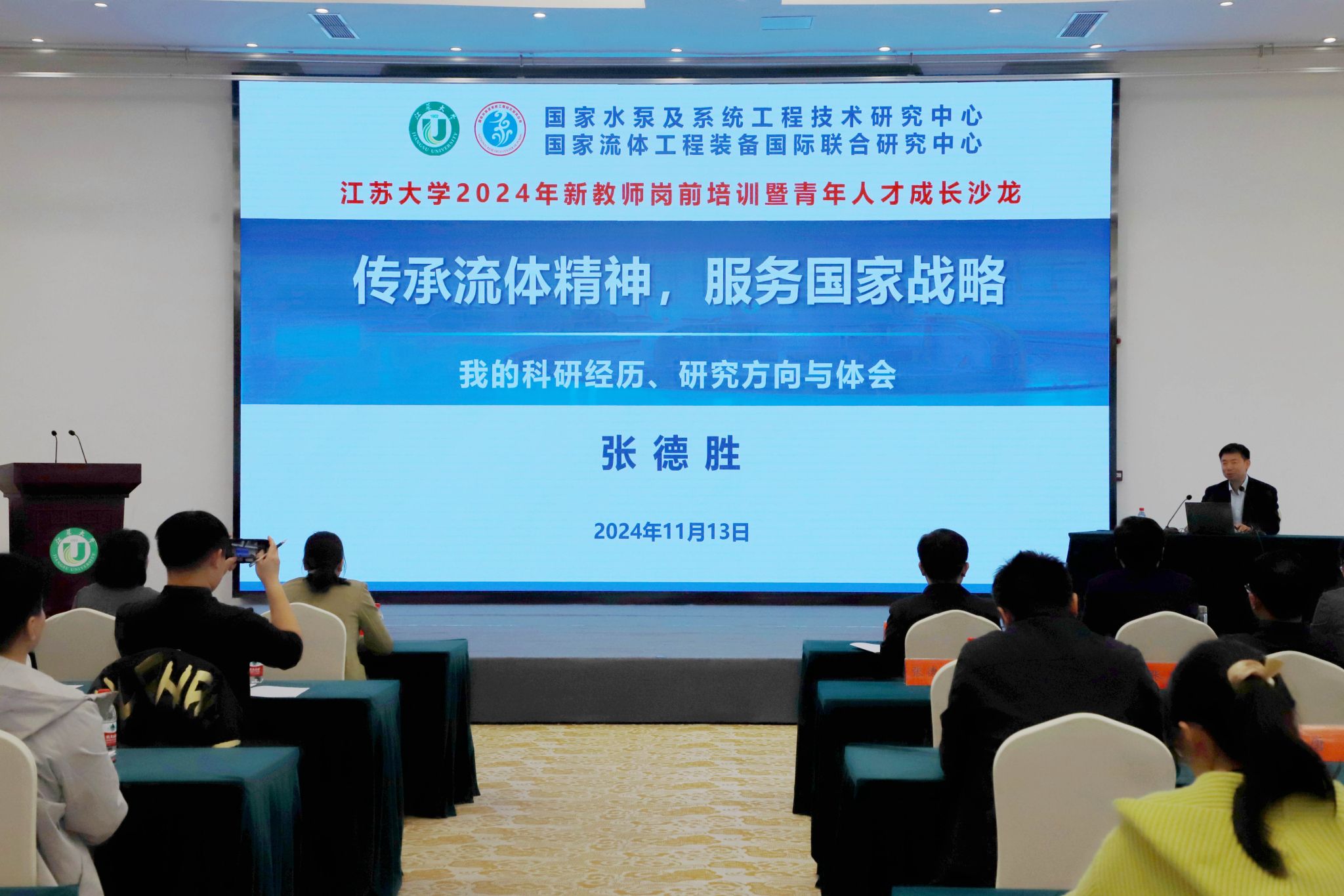 国家杰出青年科学基金获得者、流体中心张德胜教授作题为《传承流体精神,服务国家战略》的专题报告。他结合个人成长经历,分享了自己关于大学教师定位、研究方向选择、个人和团队发展等心得体会,勉励大家明确职业规划,树立人生目标,提升生命境界,做到读书明理、立德修身,成为一名有目标、有理想、有追求的纯粹的大学教师,提升人生的高度、宽度、强度、密度、速度、温度、亮度。