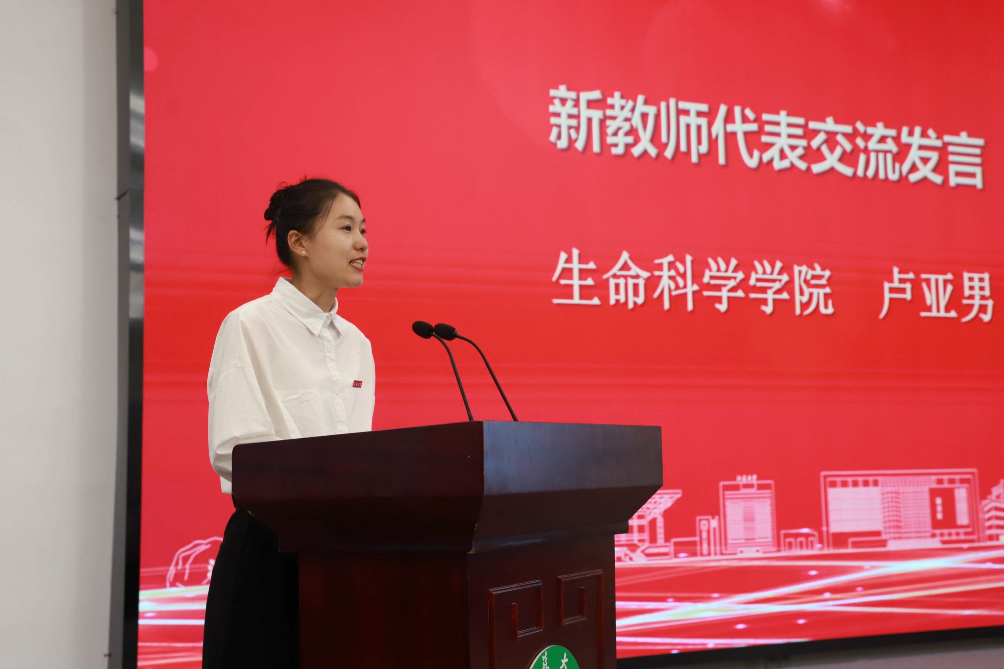 培训班总结交流中,马克思主义学院辛熙恒、生命科学学院卢亚男作为新教师代表交流发言,医学院教授张徐、机械工程学院教授蔡杰作为青年人才代表交流发言。