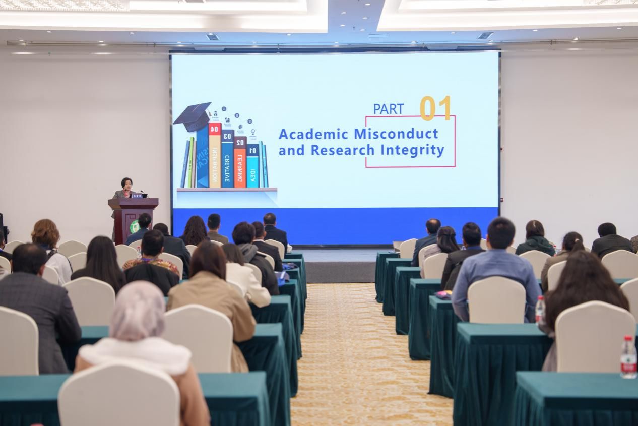 研讨会特邀四位专家作主旨报告。南京航空航天大学教授彭聪围绕来华留学生如何加强学术诚信和规范进行了深入探讨,系统阐述了诚信写作的核心价值与具体实践方法。南京理工大学教授陈翔就在中韩两国的求学和工作经历进行了深入分享,探讨了留学研究生如何应对文化适应与学术研究的双重挑战。东南大学教授浦正宁就国际研究生如何更好地适应和融入中国特色研究生培养体系进行了深入解读,结合中国作为全球第二大研究生培养国的优势,为在场留学生提供了切实可行的适应策略。beat365中文官方网站教授张琪就科学写作中的关键技巧与常见陷阱进行了深入剖析,详细阐述了如何在竞争激烈的学术领域撰写高质量论文。