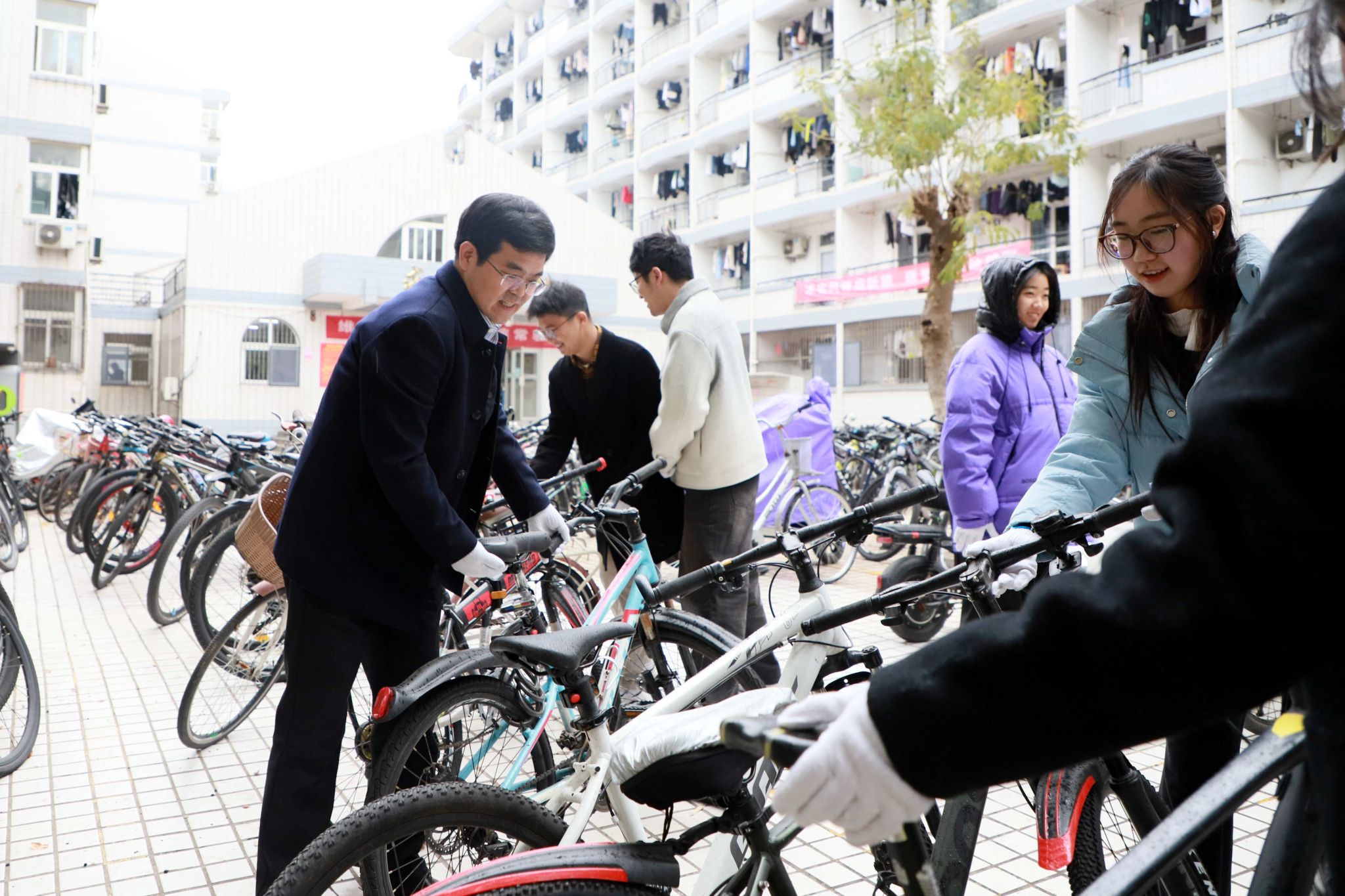 活动后,李洪波向学生代表赠送了文创纪念品,并与同学们一起参加了社区自行车整理、路面清扫等校园志愿服务活动。(管理学院)
