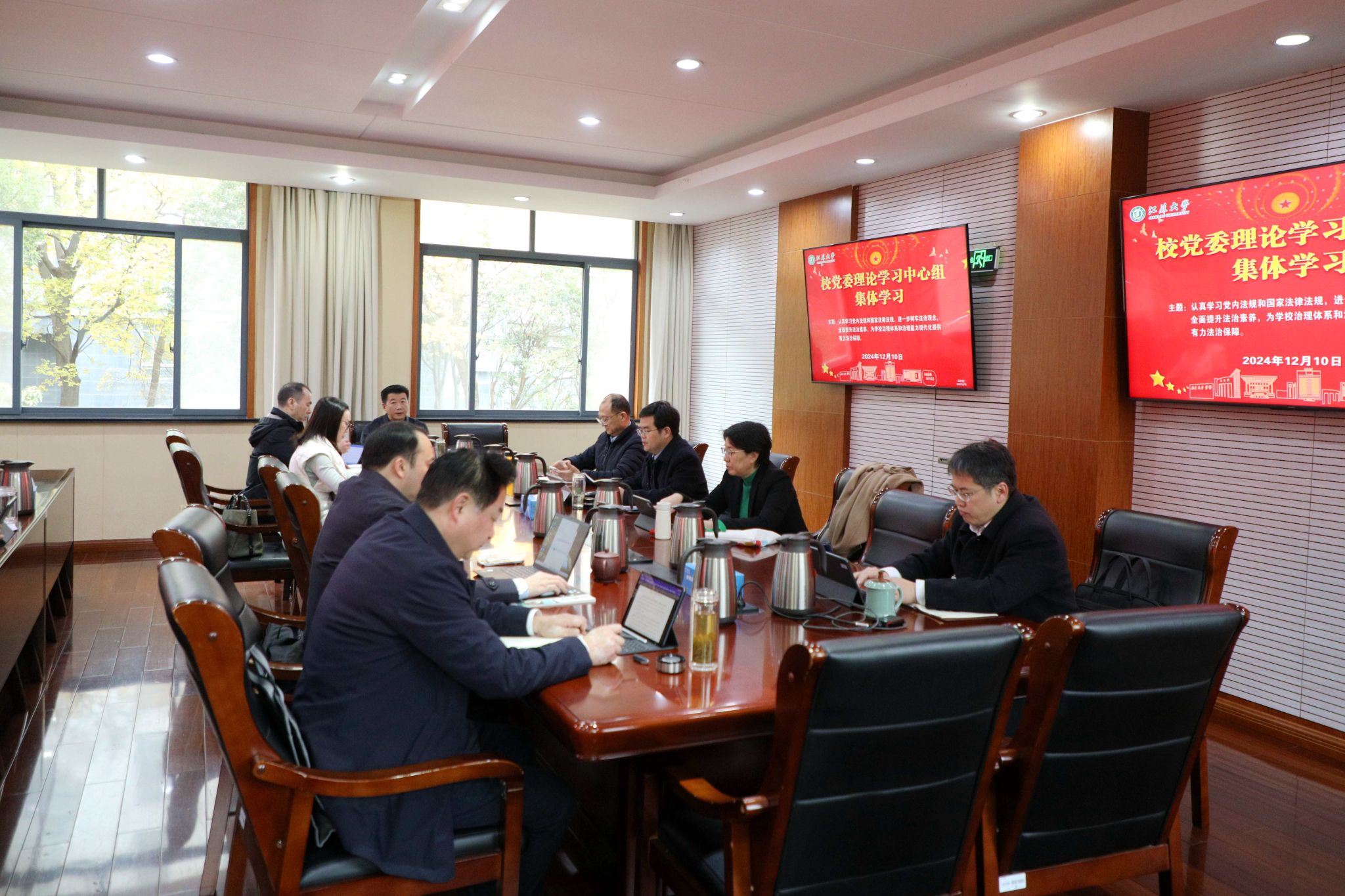 12月10日,校党委理论学习中心组在行政一号楼201会议室围绕学习党内法规和国家法律法规开展集体学习。在校校党委理论学习中心组成员参加学习,集体学习由校党委书记李洪波主持。