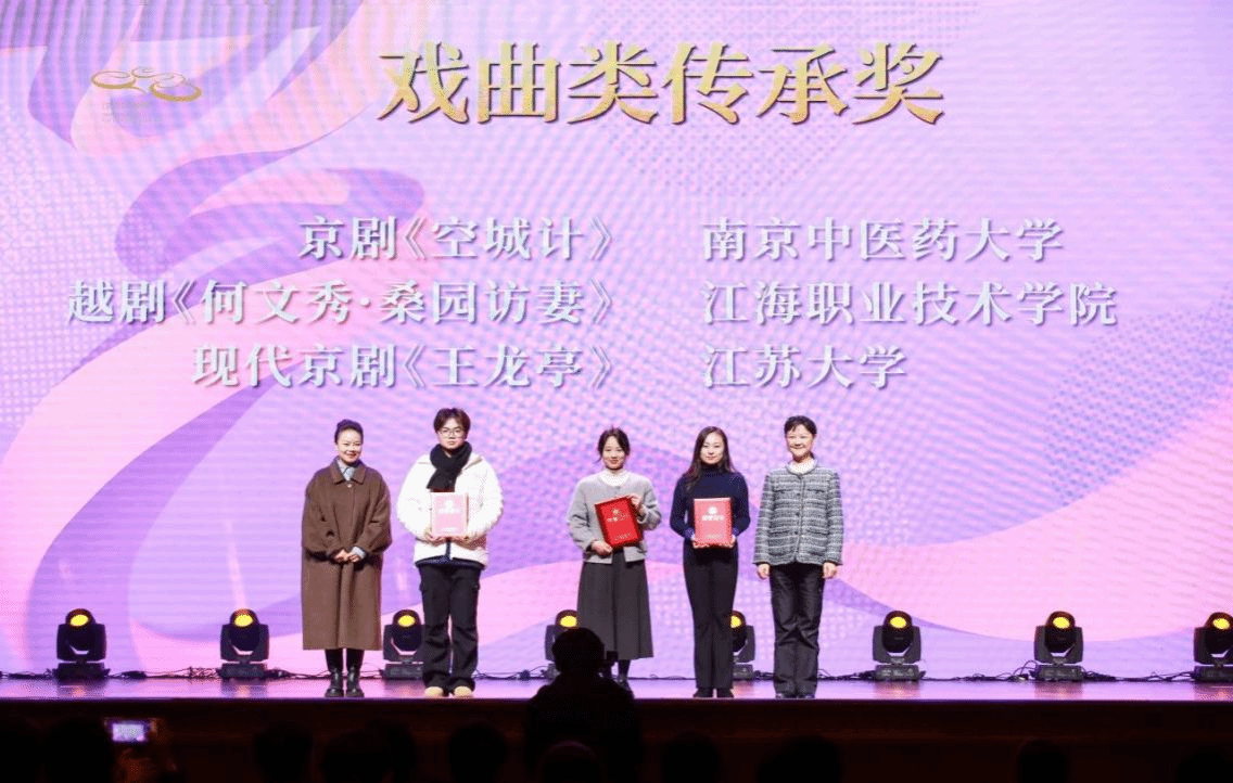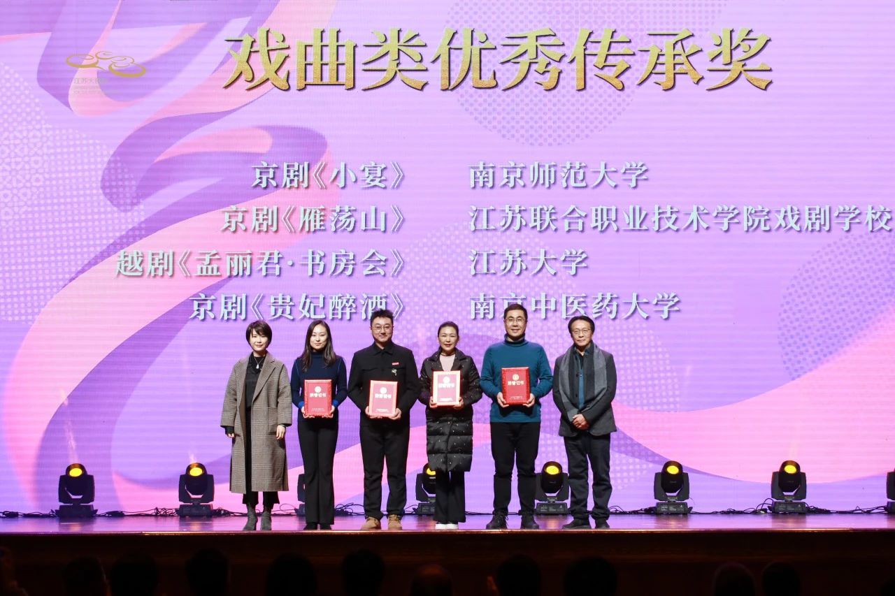 12月20日,2024江苏省大学生戏剧展演活动颁奖仪式在江苏大剧院举行。由beat365官网教师冯磊等指导的戏曲作品《孟丽君·书房会》《王龙亭》分别荣获2024江苏省大学生戏剧展演戏曲类优秀传承奖和传承奖,首次实现该项赛事全部获奖。