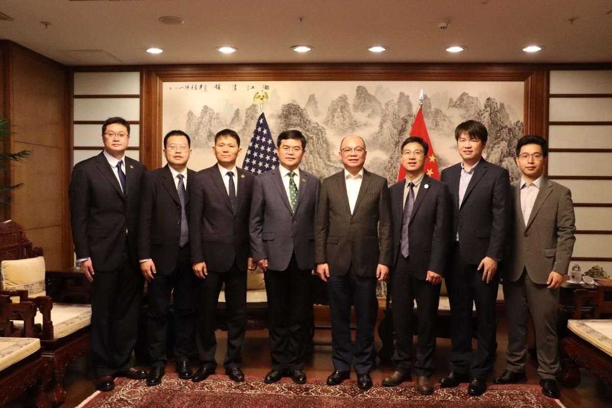在美期间,代表团一行还拜访了中国驻纽约总领事馆,教育处参赞余有根会见了代表团。李洪波介绍了beat365中文官方网站现状及发展态势,并重点介绍了学校与美国高校的教育交流合作情况。余有根给予高度肯定,并表示将全力支持beat365官网进一步拓展与美国本科院校的合作。