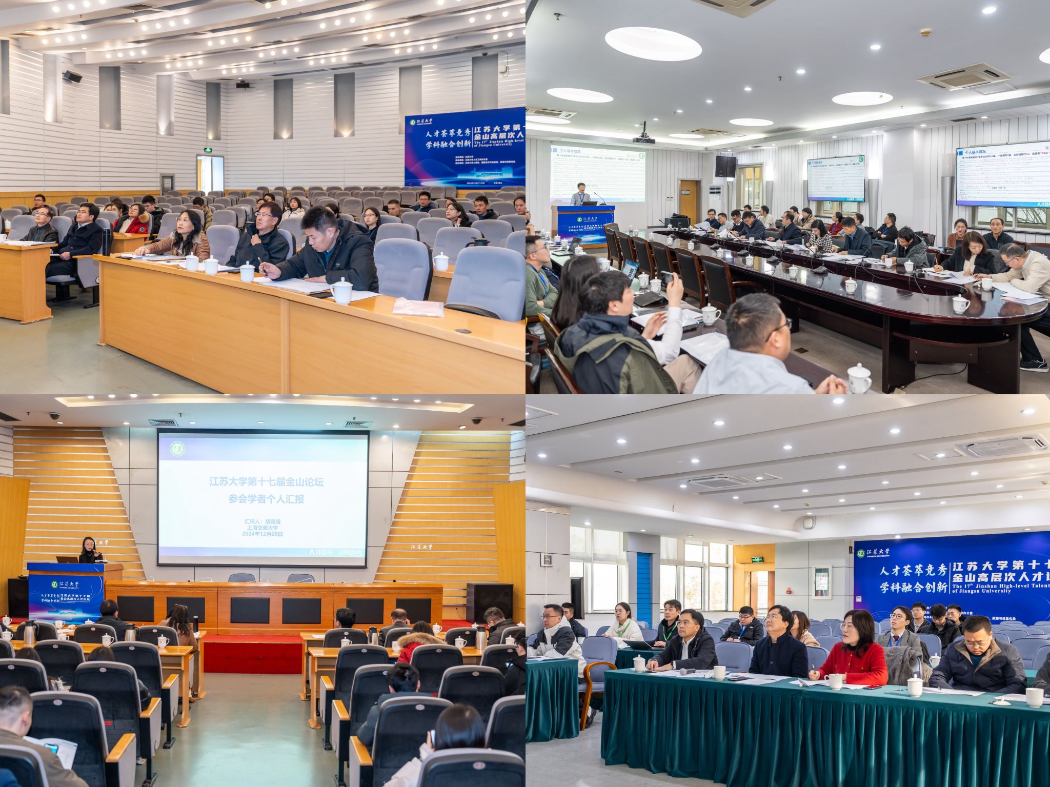 12月28日,论坛开幕式在学校青教楼三江厅举行。江苏省委组织部副部长李孝峰,江苏省委教育工委副书记、省教育厅党组成员潘漫,镇江市委常委、组织部部长张娟,江苏省委组织部人才工作处处长、一级调研员郁苍,江苏省教育厅教师工作处副处长杨菲菲,镇江市委组织部副部长郭鑫,校党委书记李洪波,校党委副书记张济建,校党委常委、副校长李红、任旭东,校党委常委、组织部部长杨敬江等领导出席开幕式,学校相关职能部门、各教学科研单位党政主要负责人、部分高层次人才和教师代表等200余人参加开幕式。开幕式由校党委常委、副校长王景全主持。