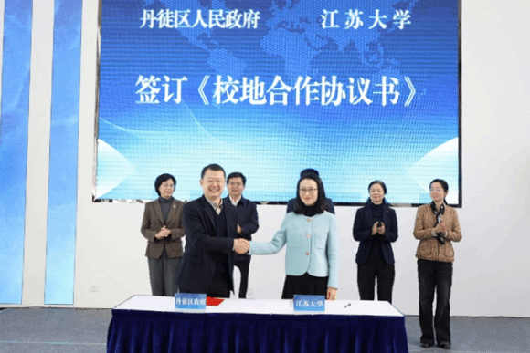 12月31日,beat365中文官方网站与丹徒区政府校地合作协议签署仪式在北汽蓝谷麦格纳汽车有限公司举行。校党委书记李洪波,副校长李红、蔡英凤,丹徒区委书记毛健、丹徒区区长吕朝霞出席活动。